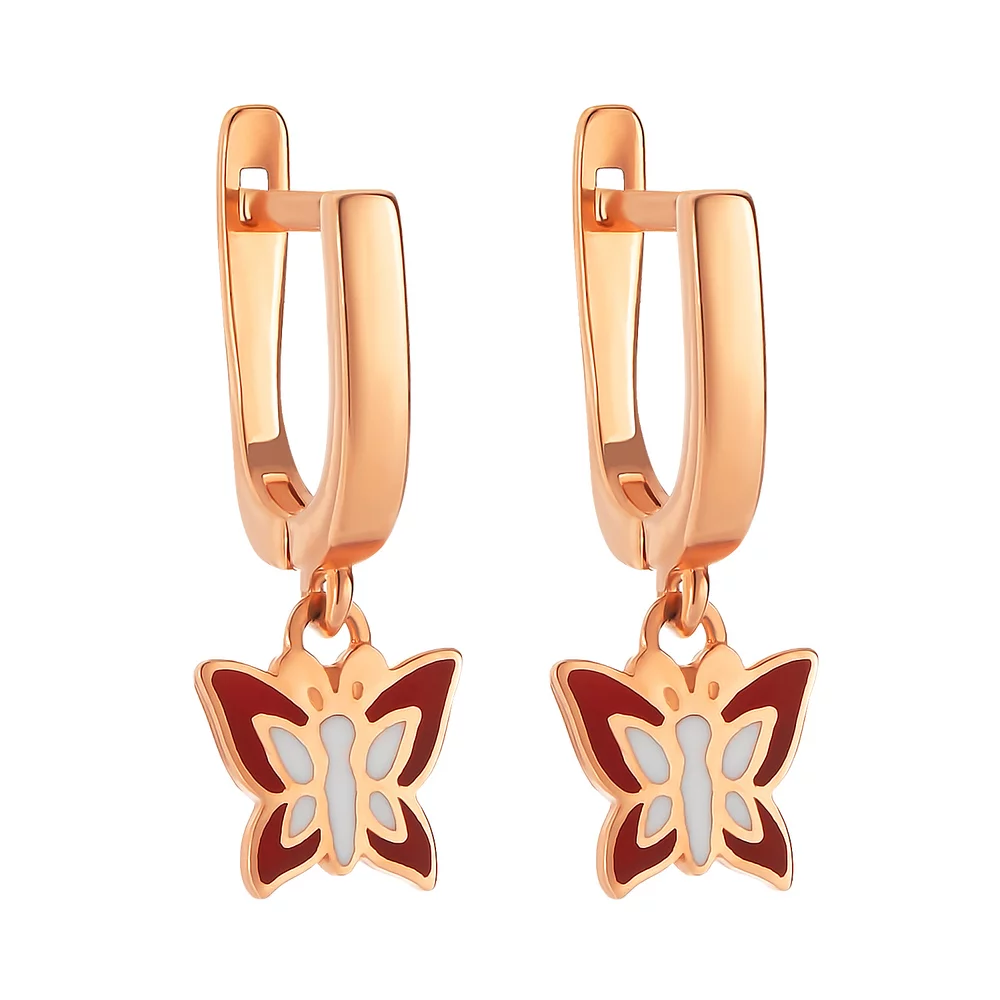 Сережки детские из красного золота с эмалью "Бабочки" - 1385813