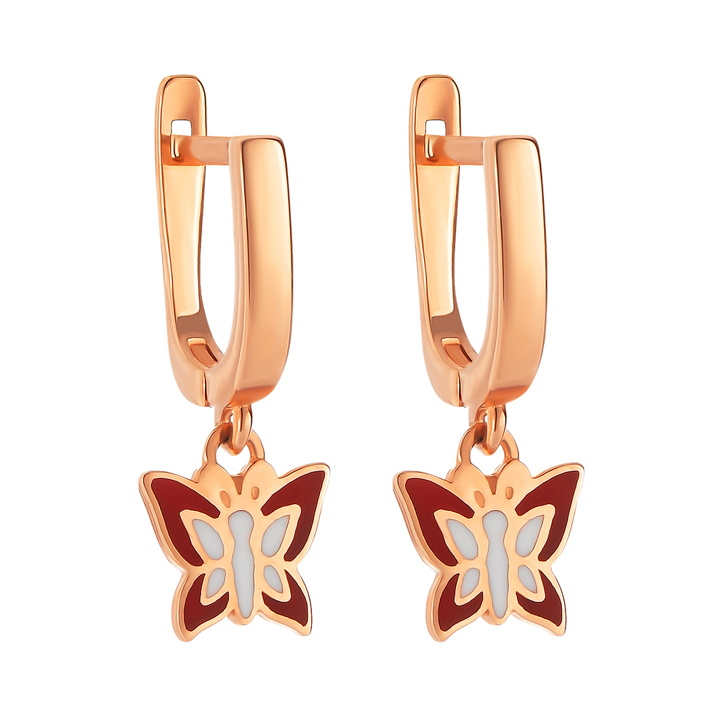 Сережки детские из красного золота с эмалью Бабочки - 971261