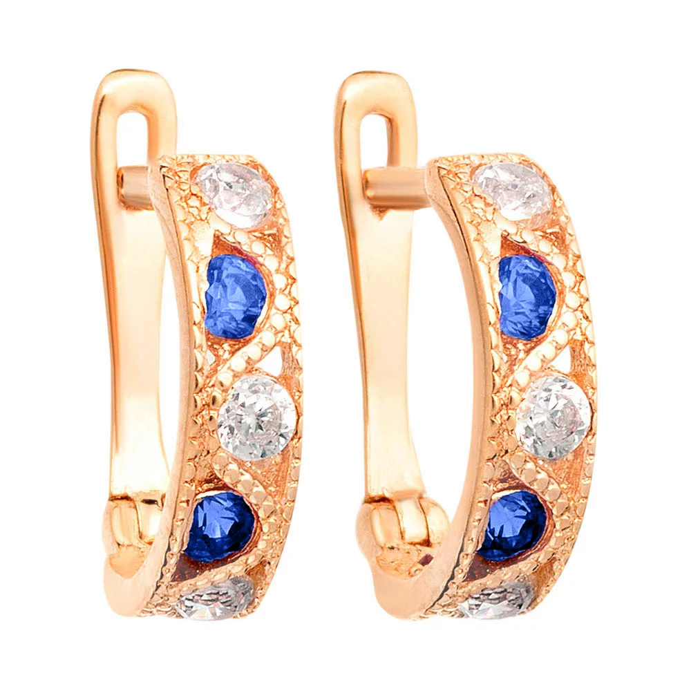 Сережки детские из красного золота с фианитами - 1385299