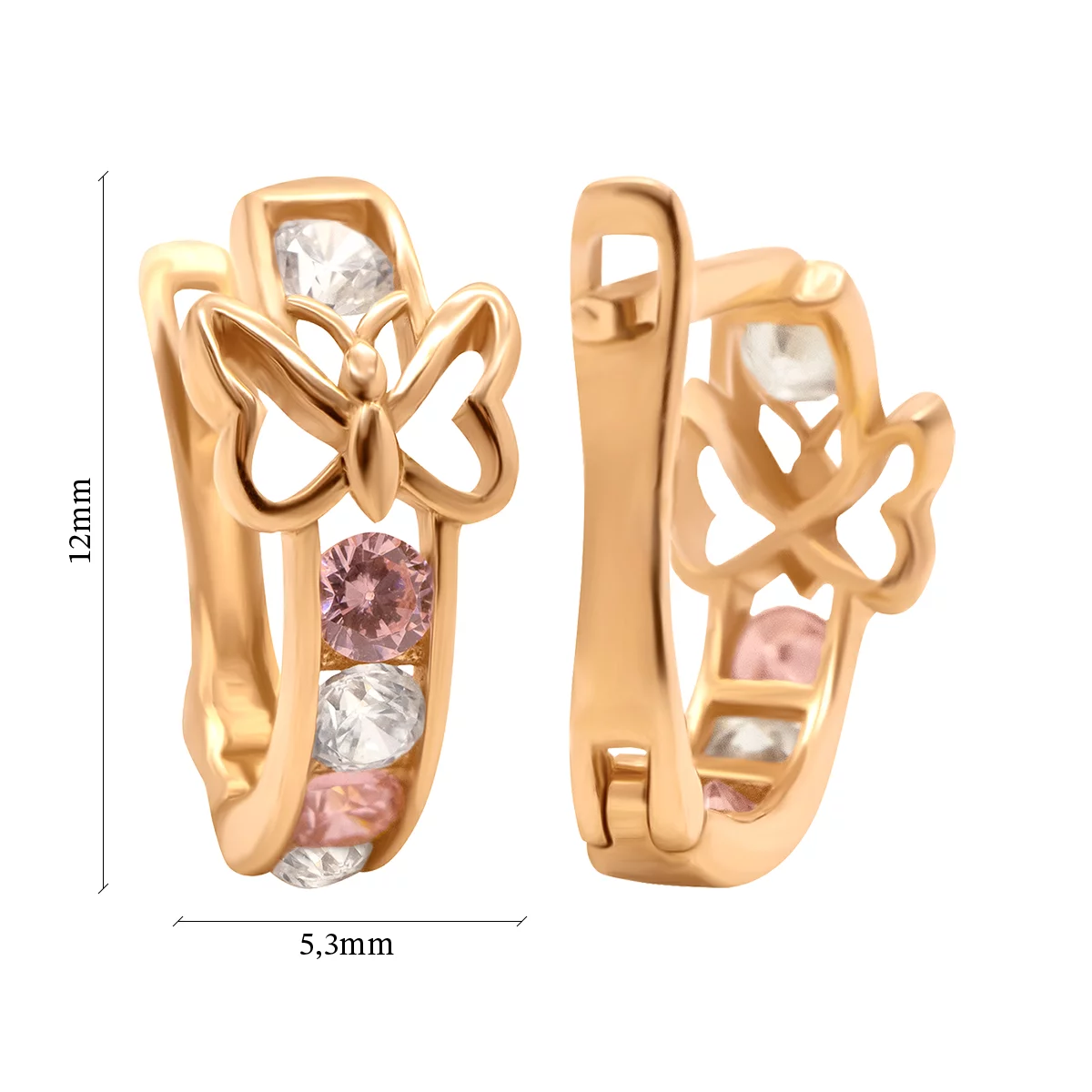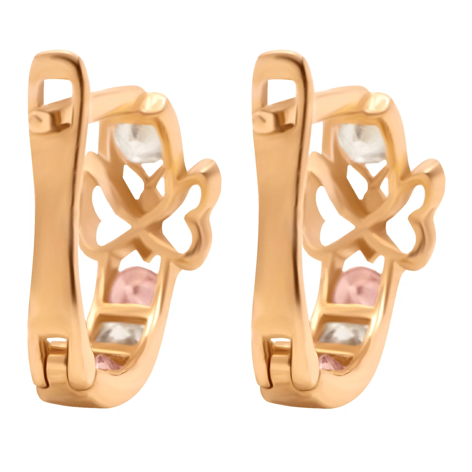 Сережки детские из красного золота с фианитом Бабочки - 1393994