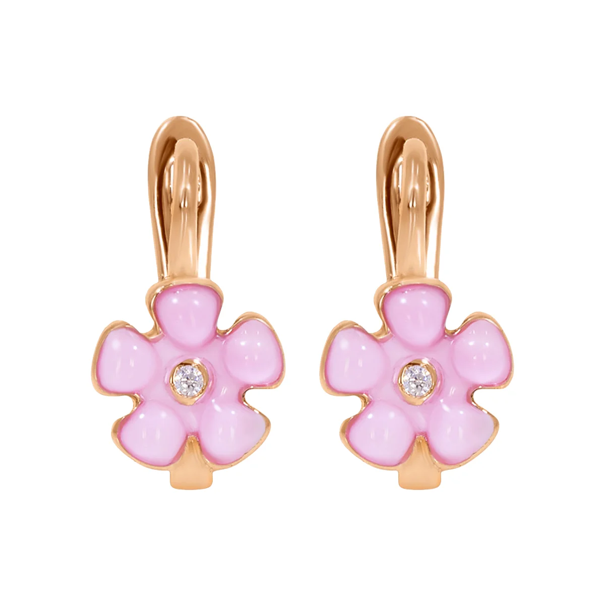 Сережки в форме листочка из красного золота с жемчужиной и фианитами - 1630904