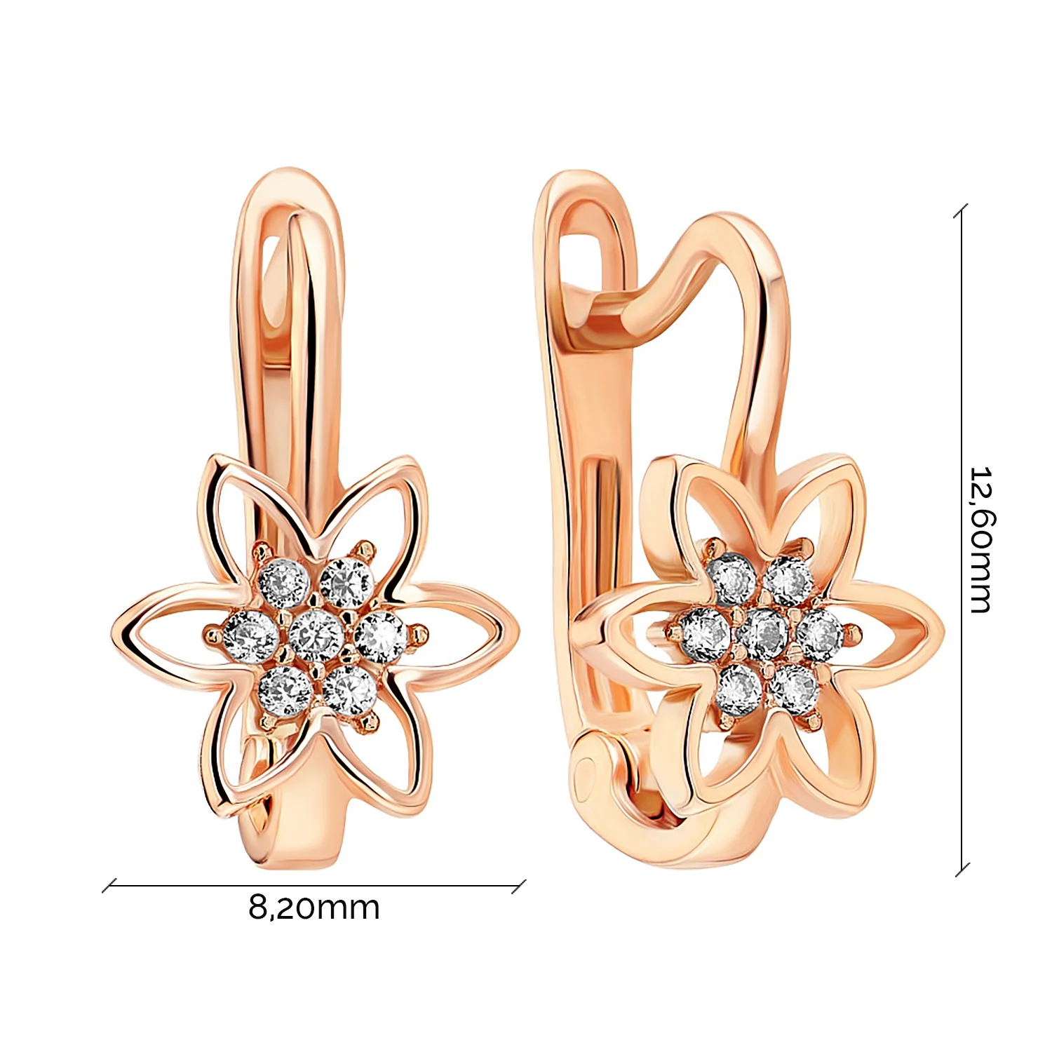 Детские серьги в красном золоте с эмалью и фианитами "Цветочек" - 679324