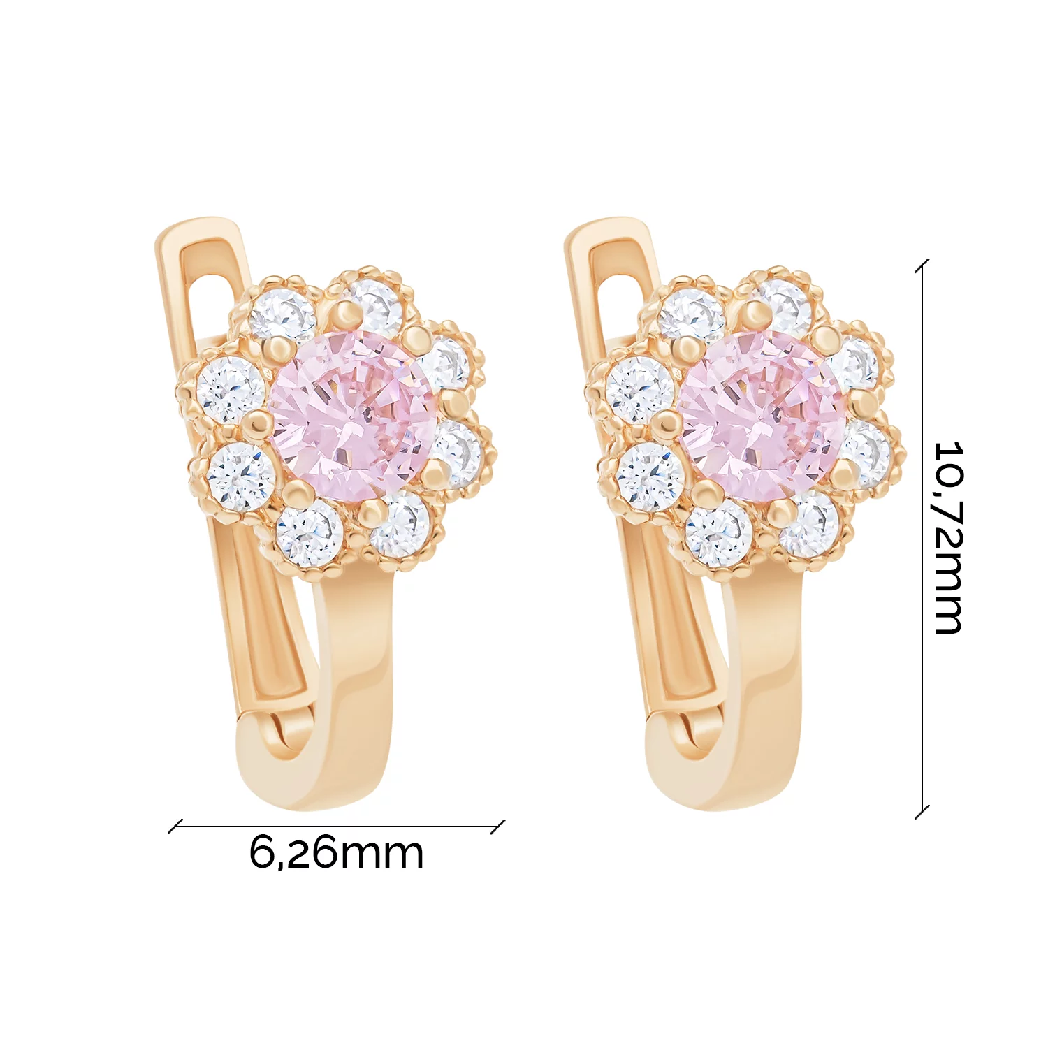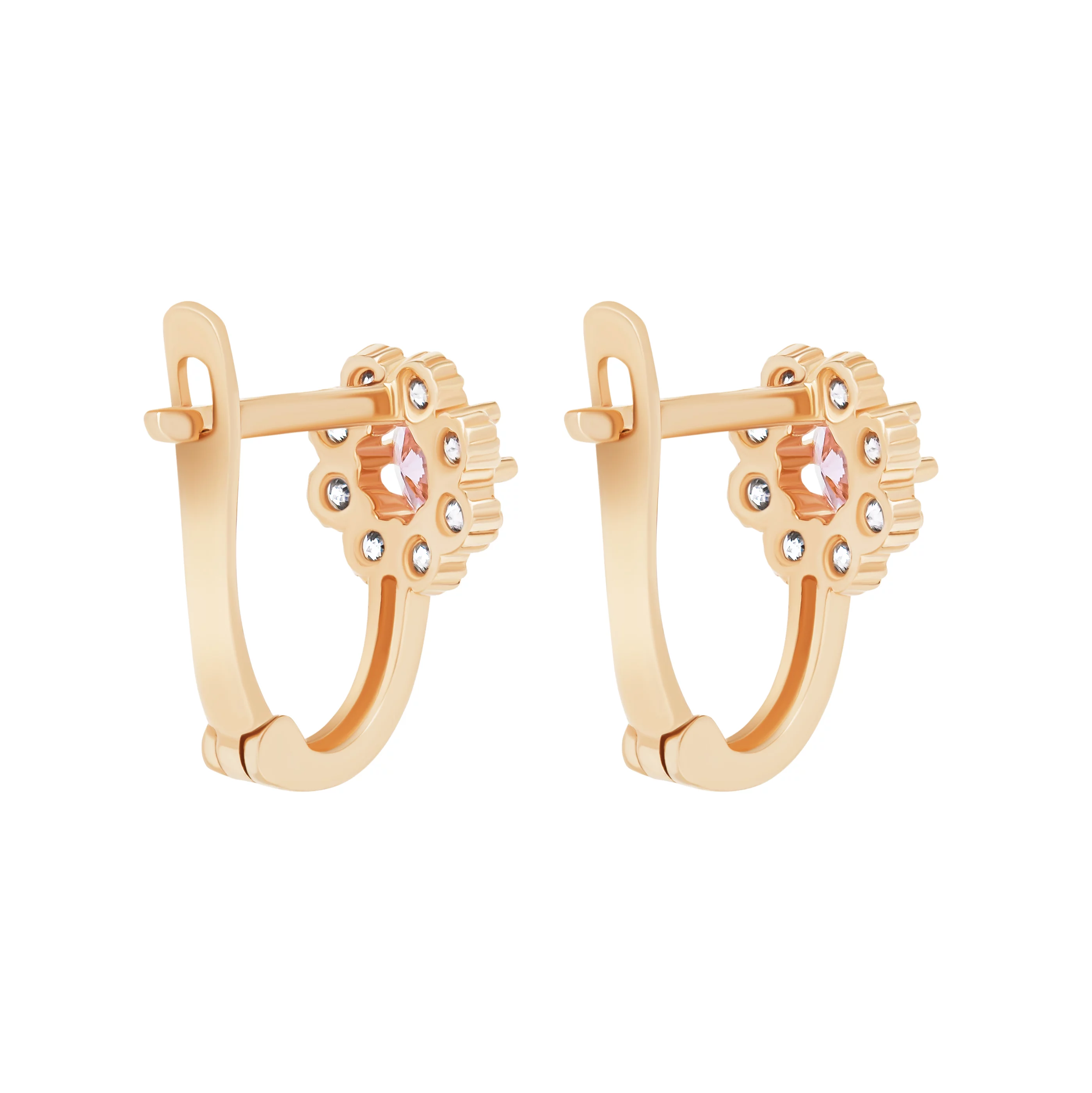Сережки в форме листочка из красного золота с жемчужиной и фианитами - 1630904