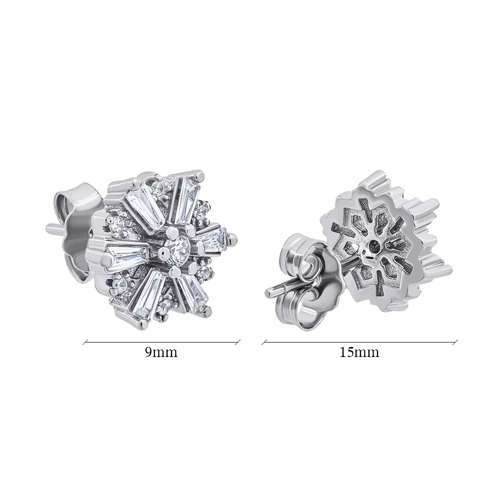 Серьги-гвоздики из серебра "Пантера" с альпинитом, фианитами и эмалью - 1786778