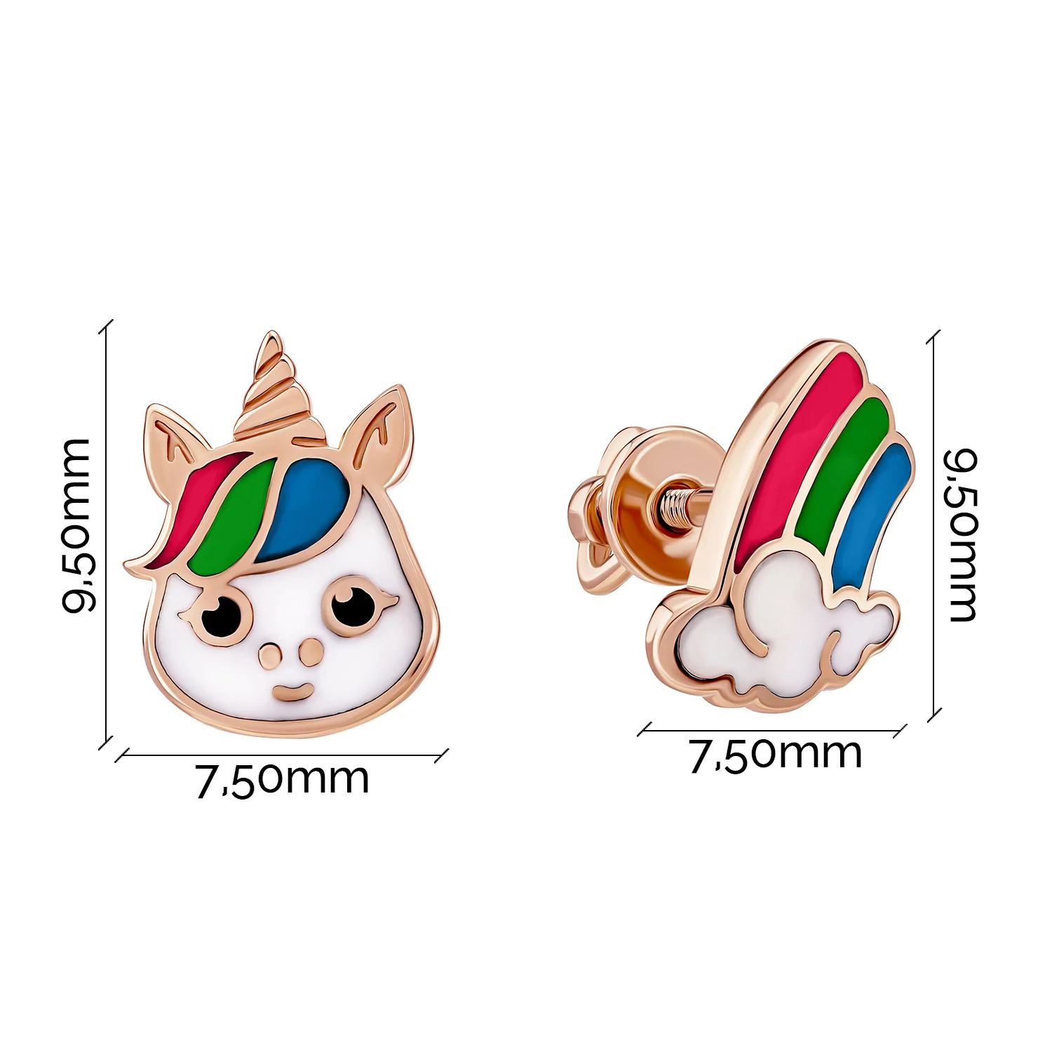Сережки-гвоздики детские "Единорог" с эмалью - 1976015