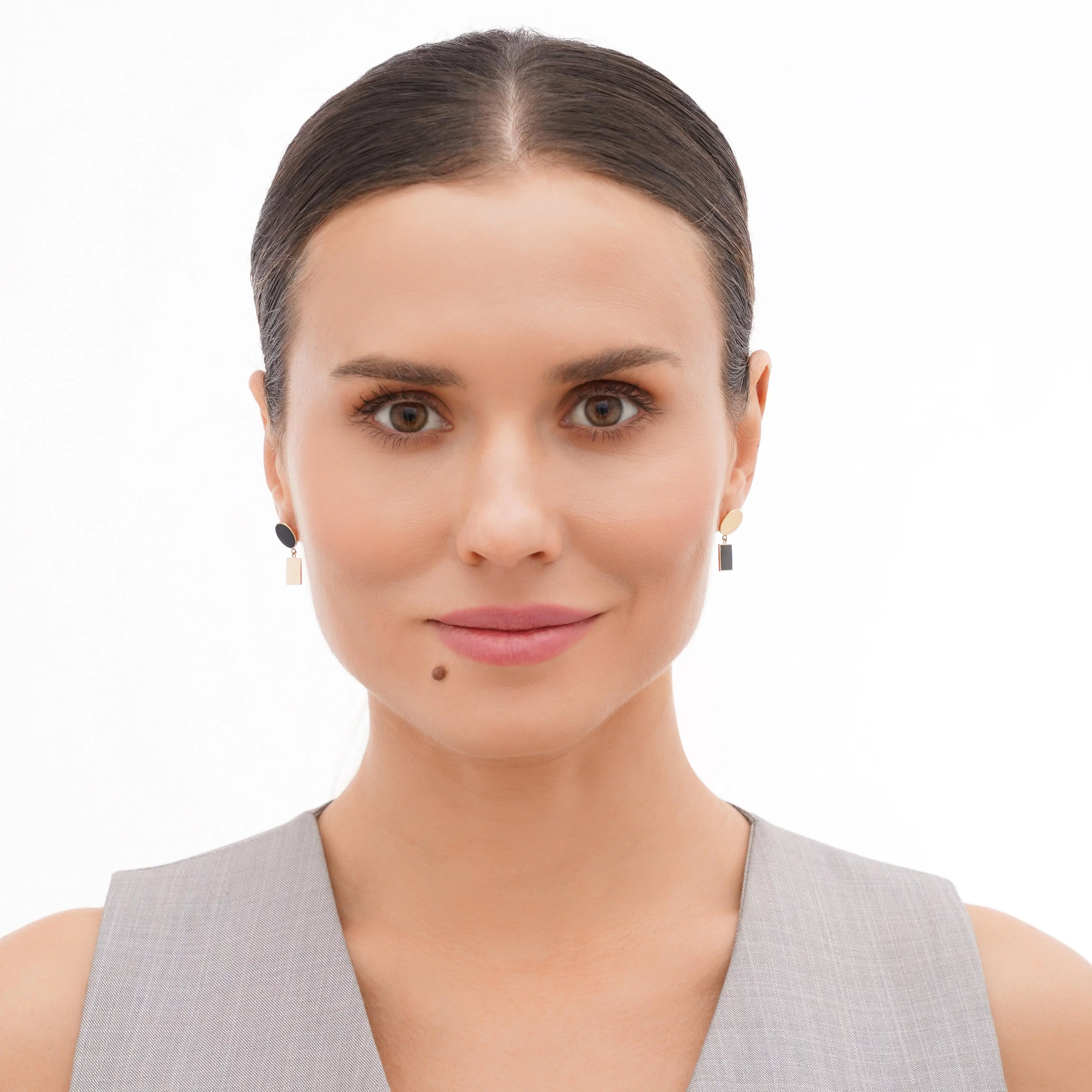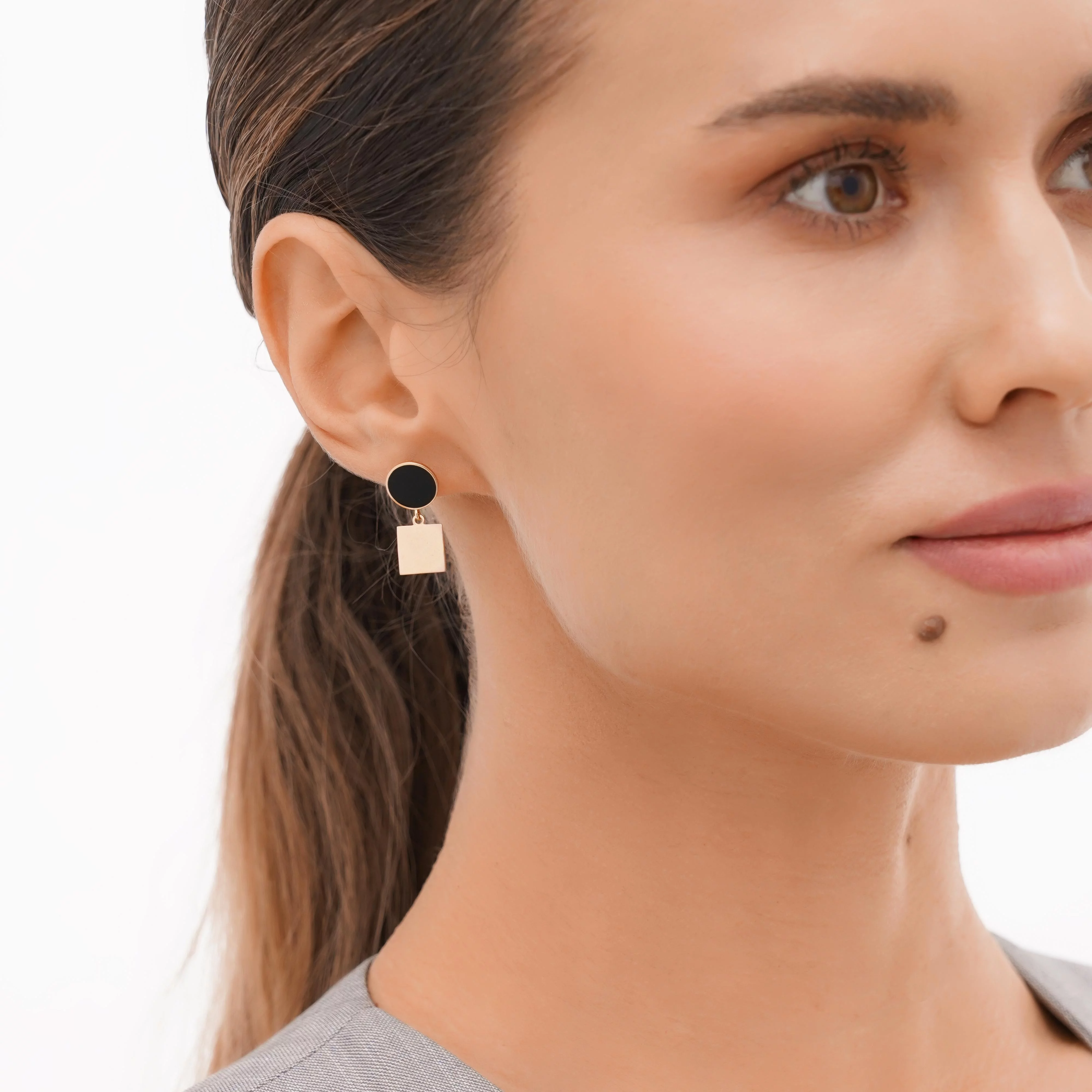 Сережки-гвоздики в минималистичном стиле из красного золота с эмалью - 1924909