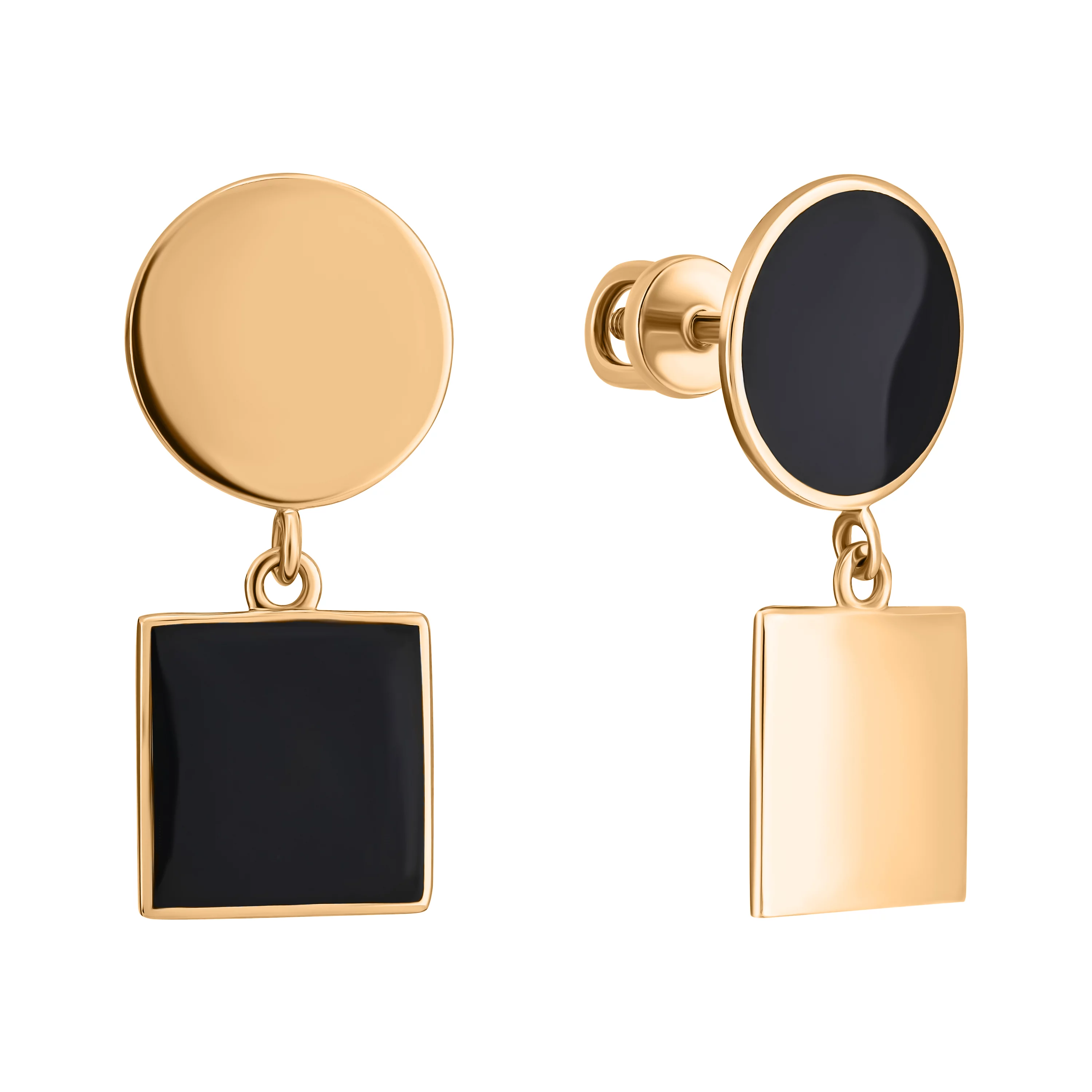 Элегантные сережки-гвоздики "Монетка" из красного золота с эмалью - 1923478