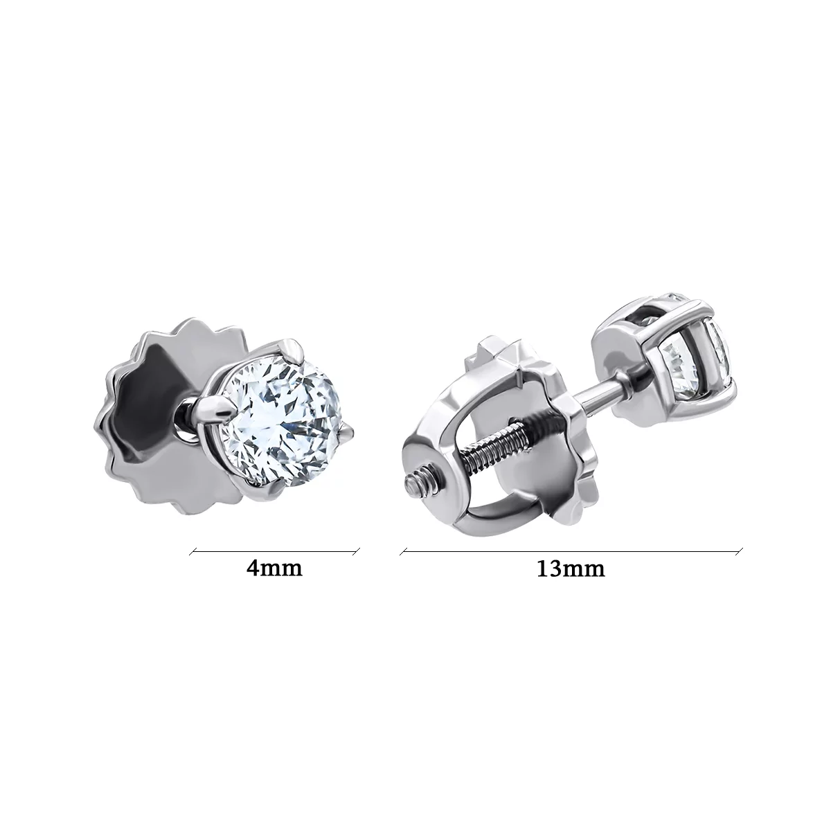 Сережки-гвоздики из белого золота с бриллиантами - 1266235
