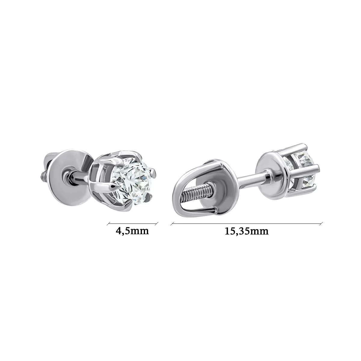 Сережки-гвоздики из белого золота с бриллиантами - 1266237
