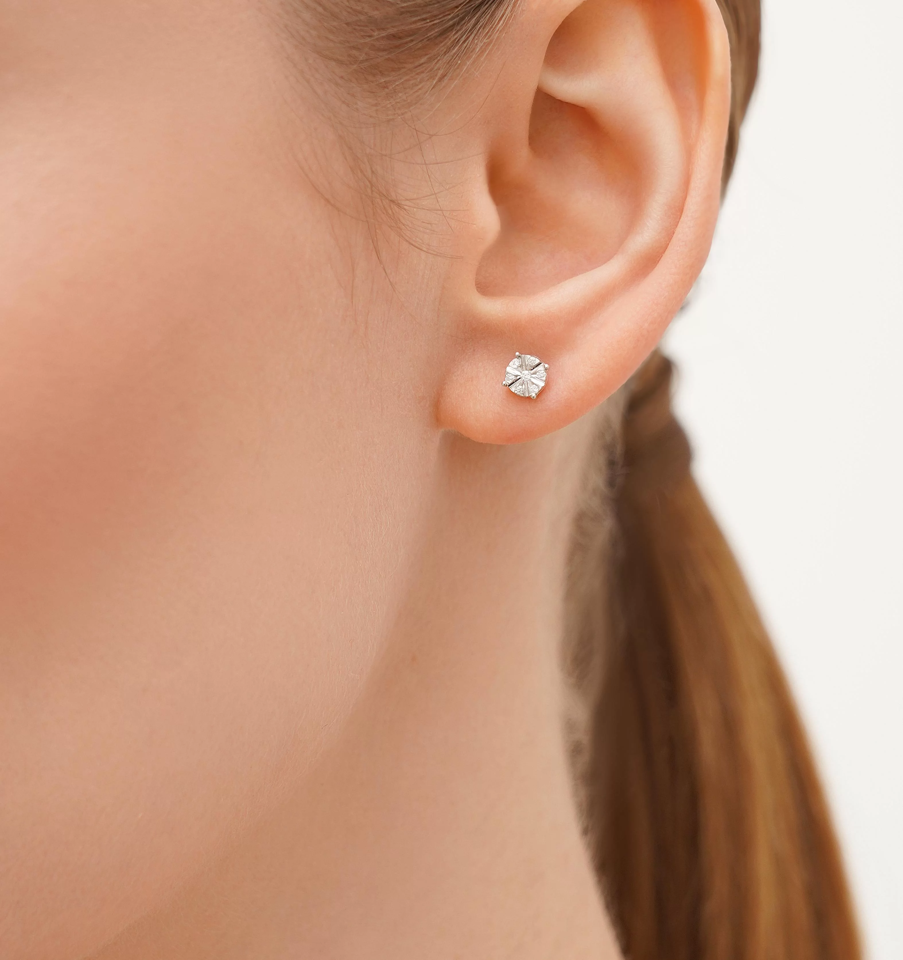 Сережки-гвоздики "Квадрат" в минималистичном стиле с из белого золота с бриллиантами - 1876382