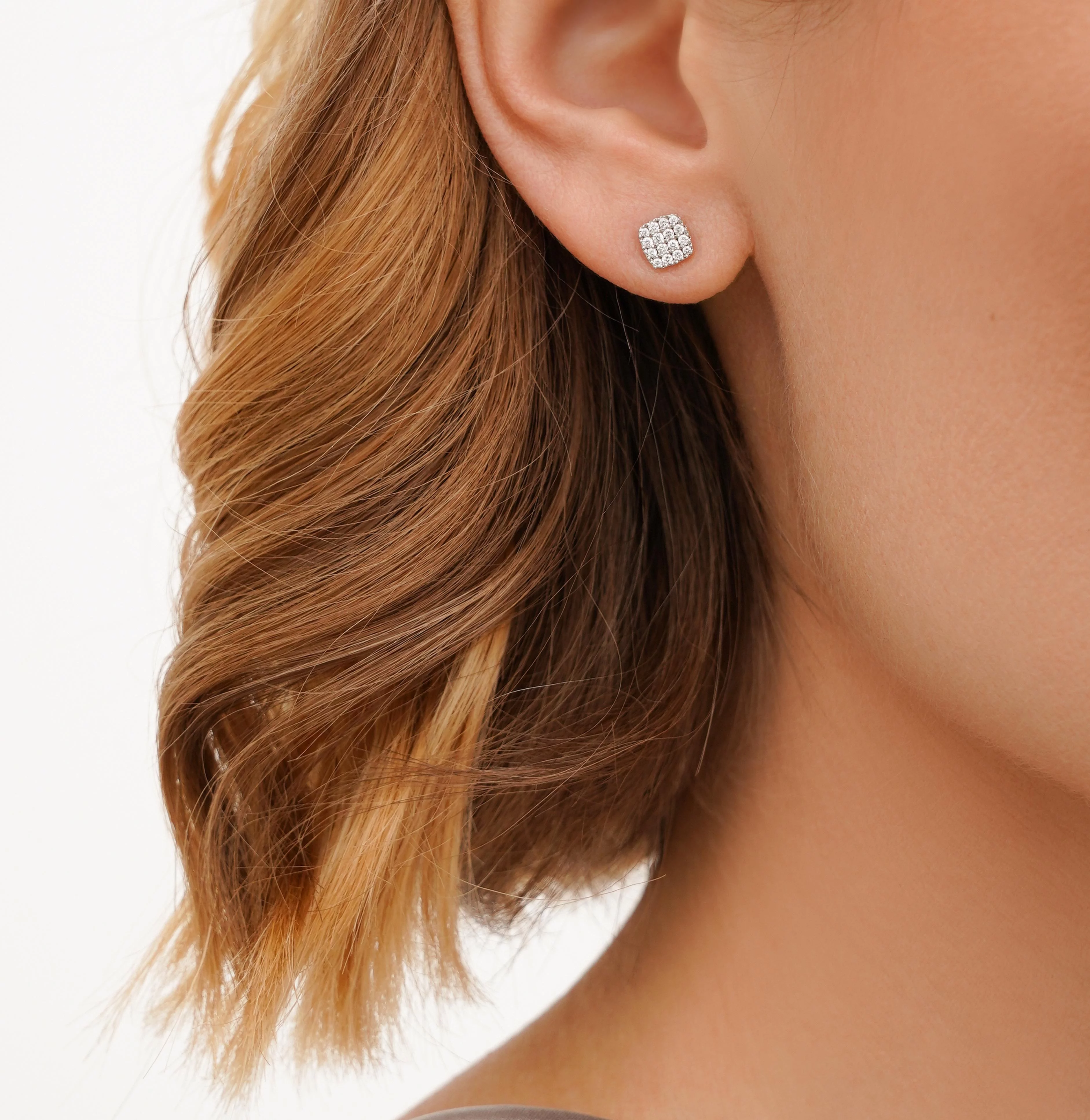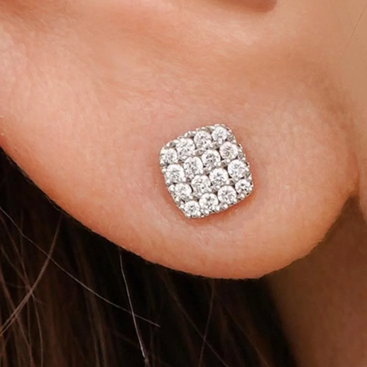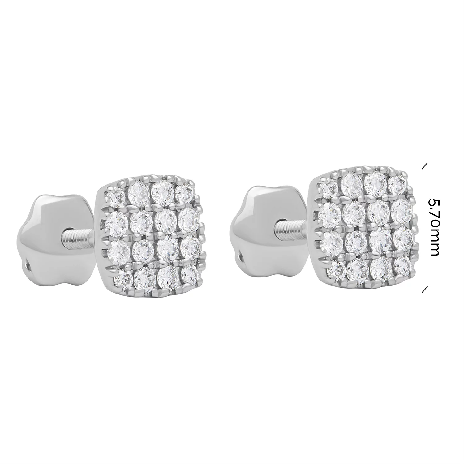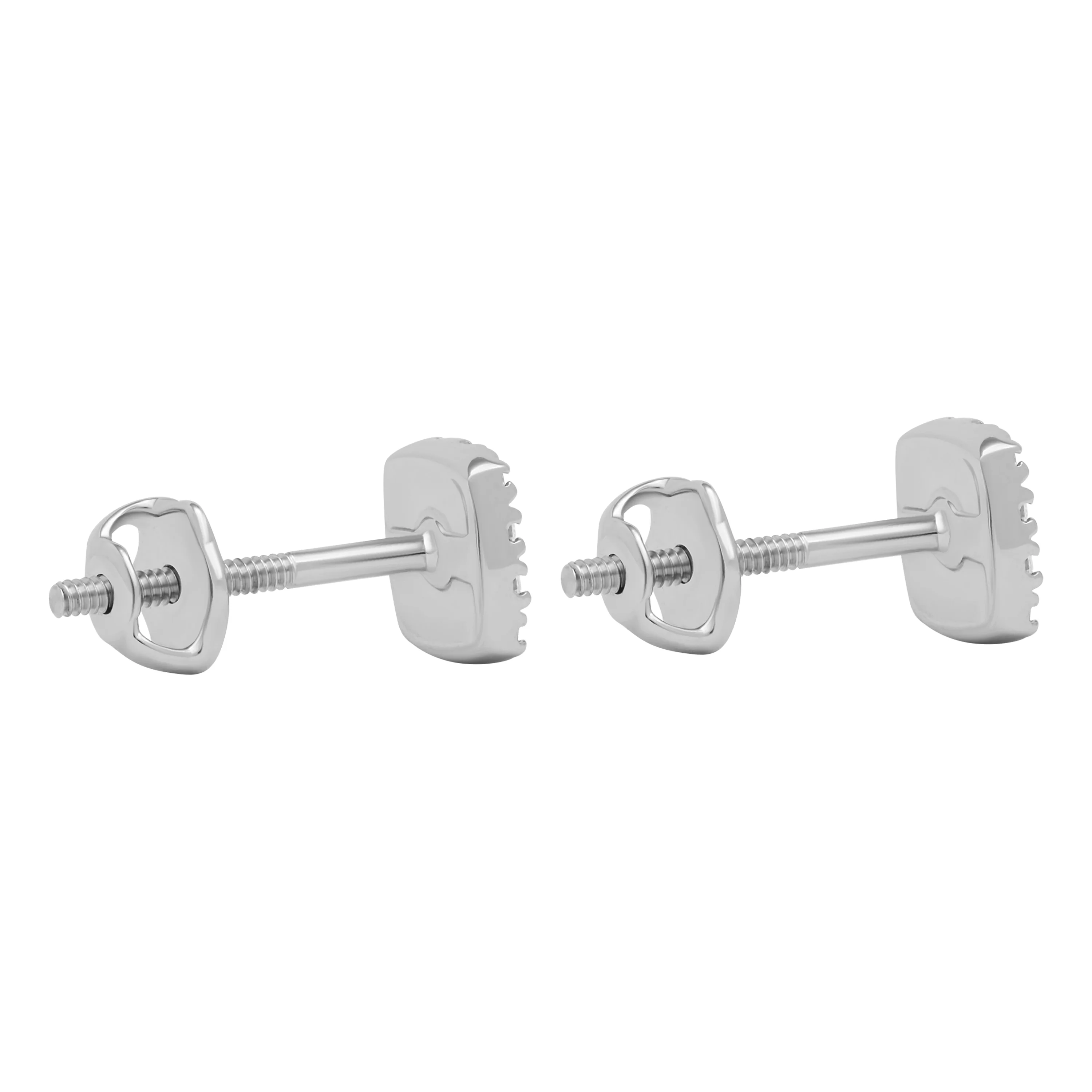 Сережки-гвоздики "Квадрат" в минималистичном стиле с из белого золота с бриллиантами - 1876382