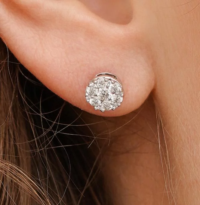 Сережки-гвоздики из белого золота с бриллиантами - 1738783