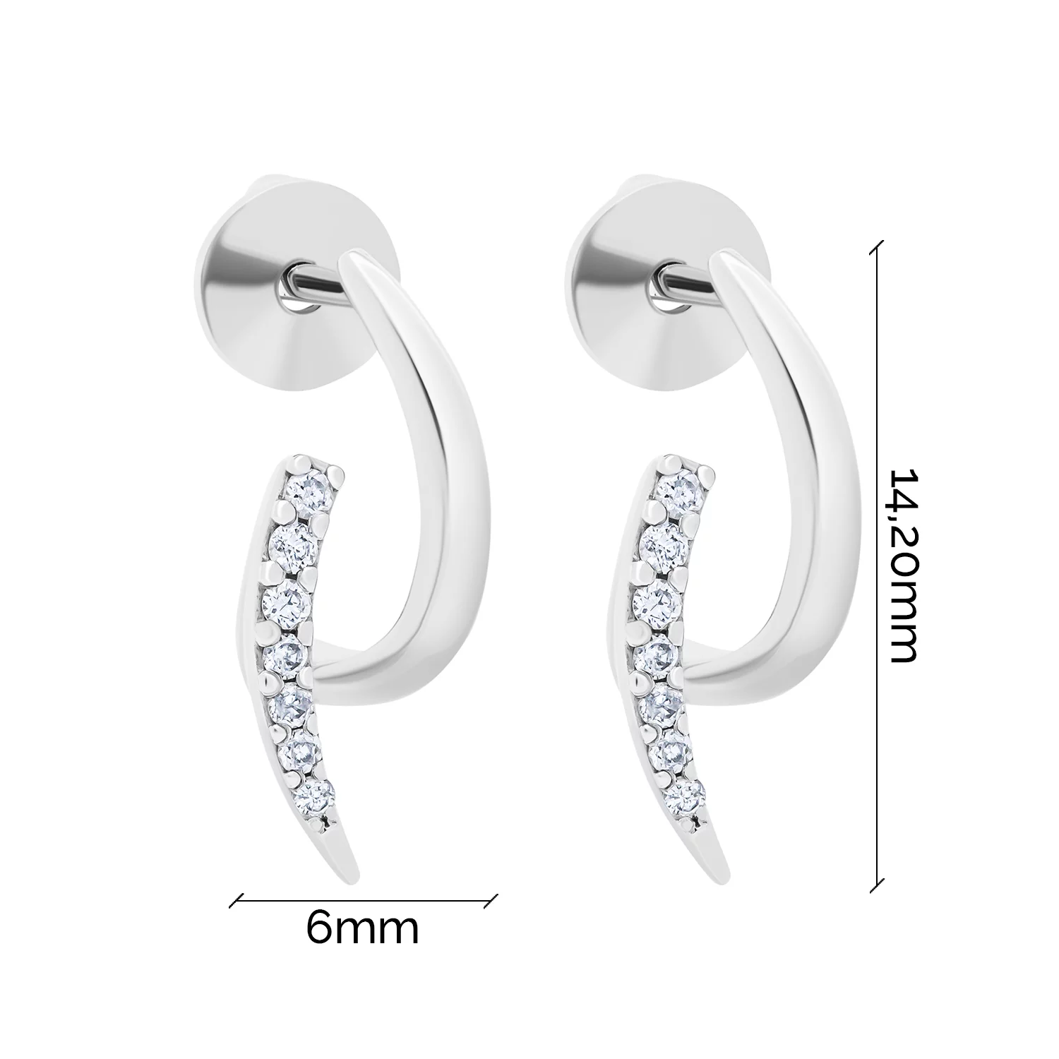 Сережки-пусеты "Круг" в белом золоте с дорожками из бриллиантов - 1876381