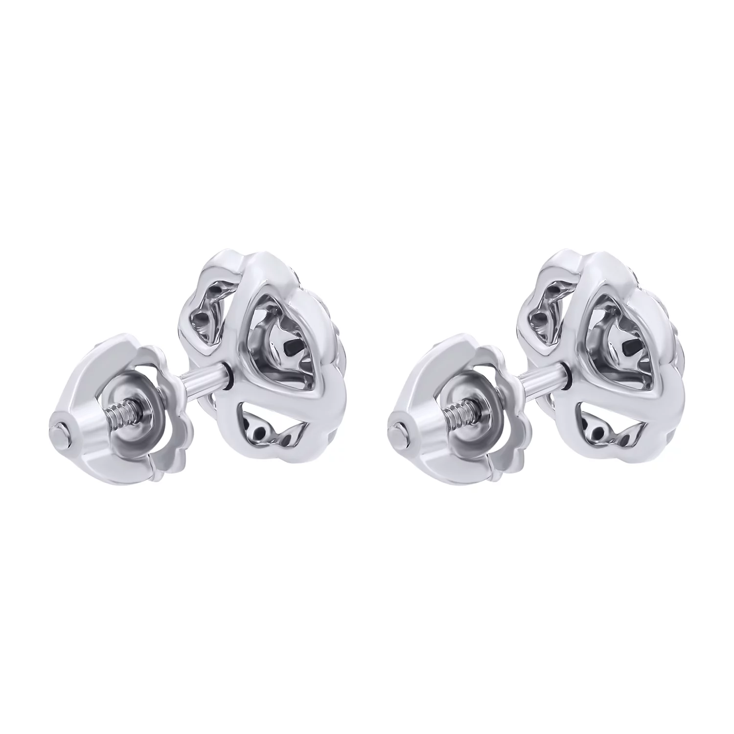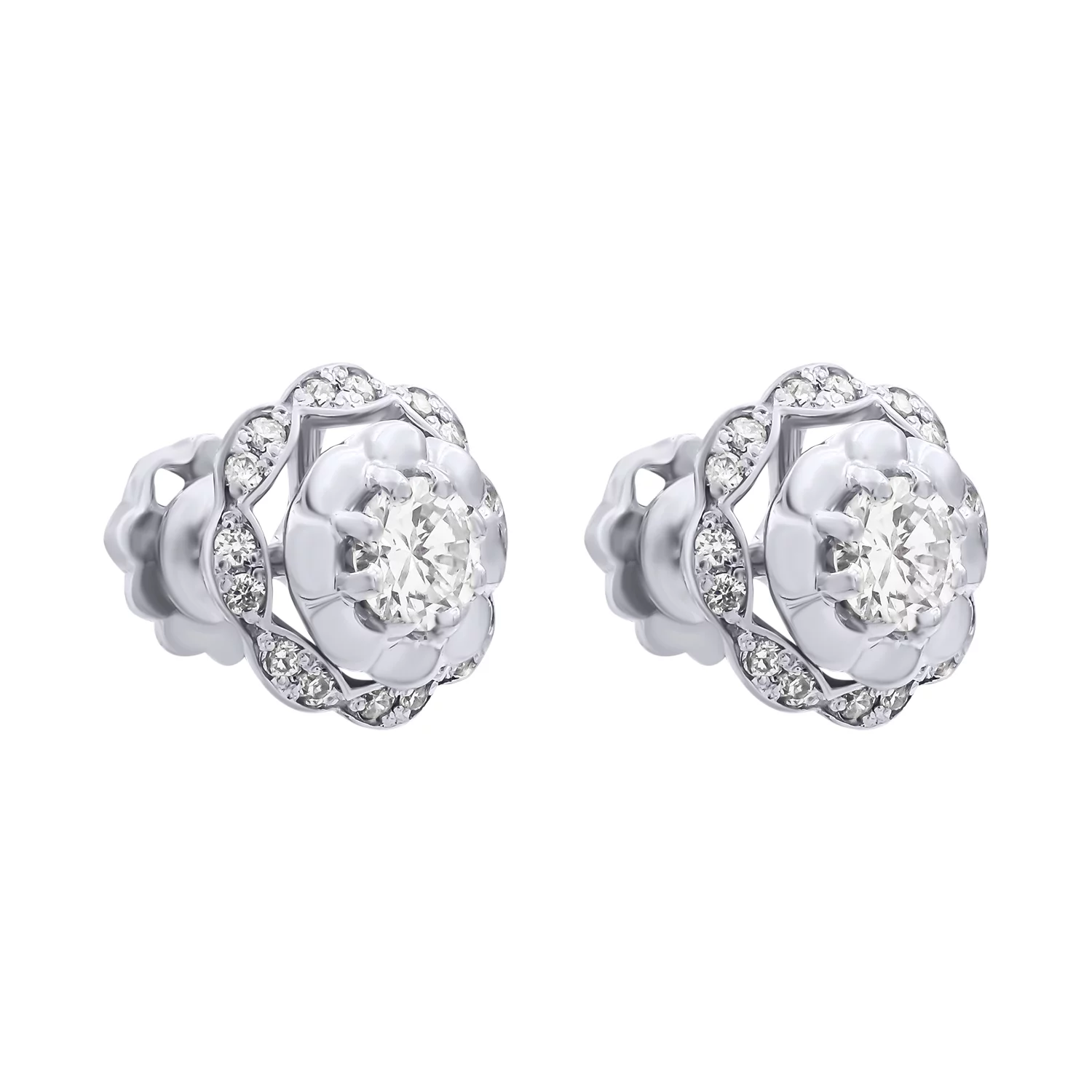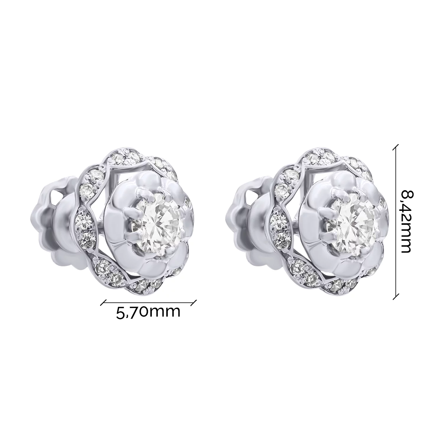 Элегантные сережки-гвоздики "Цветочек" в белом золоте с бриллиантами - 1958571