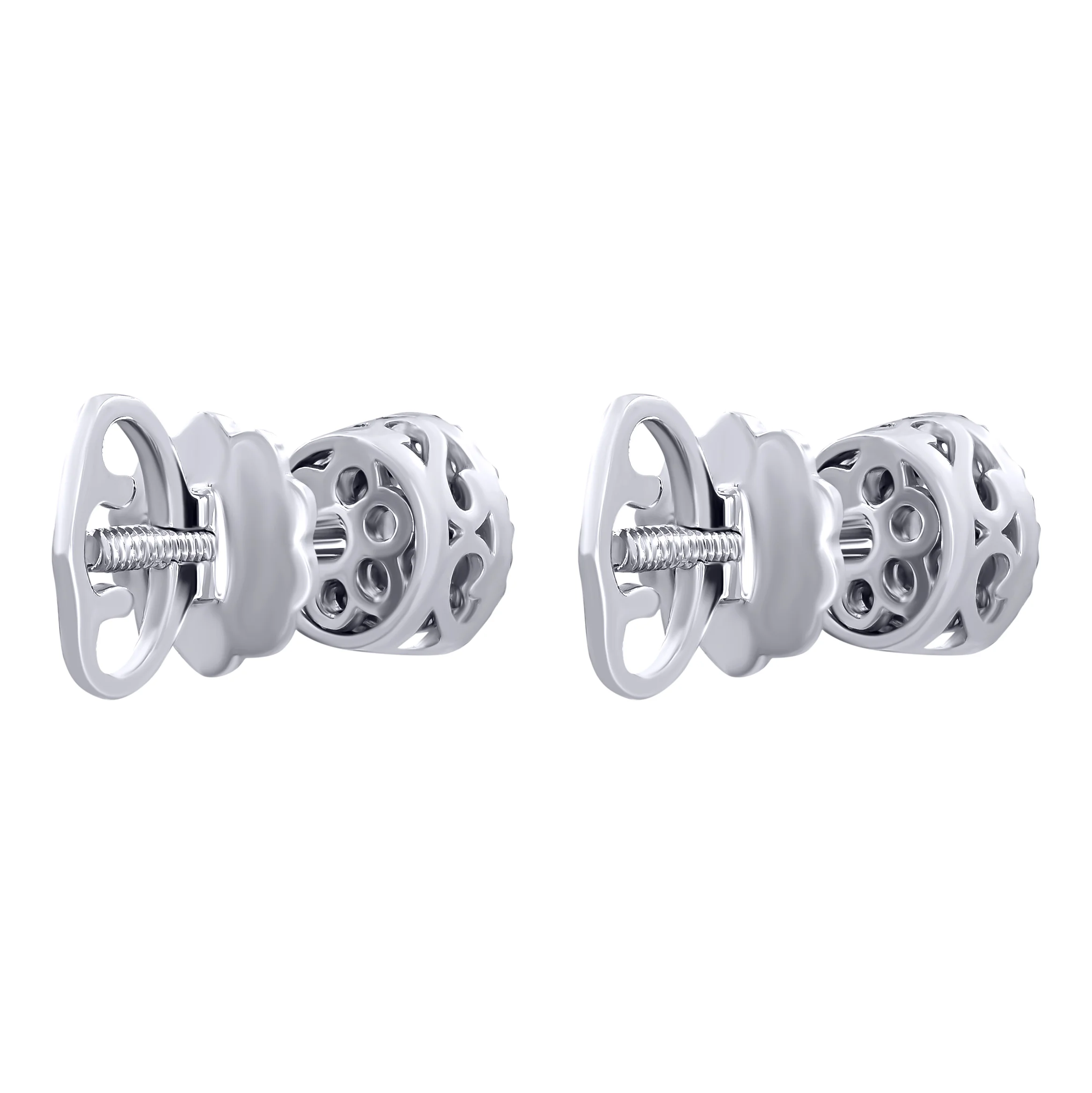 Сережки-гвоздики из белого золота с бриллиантами "Цветочек" - 863721