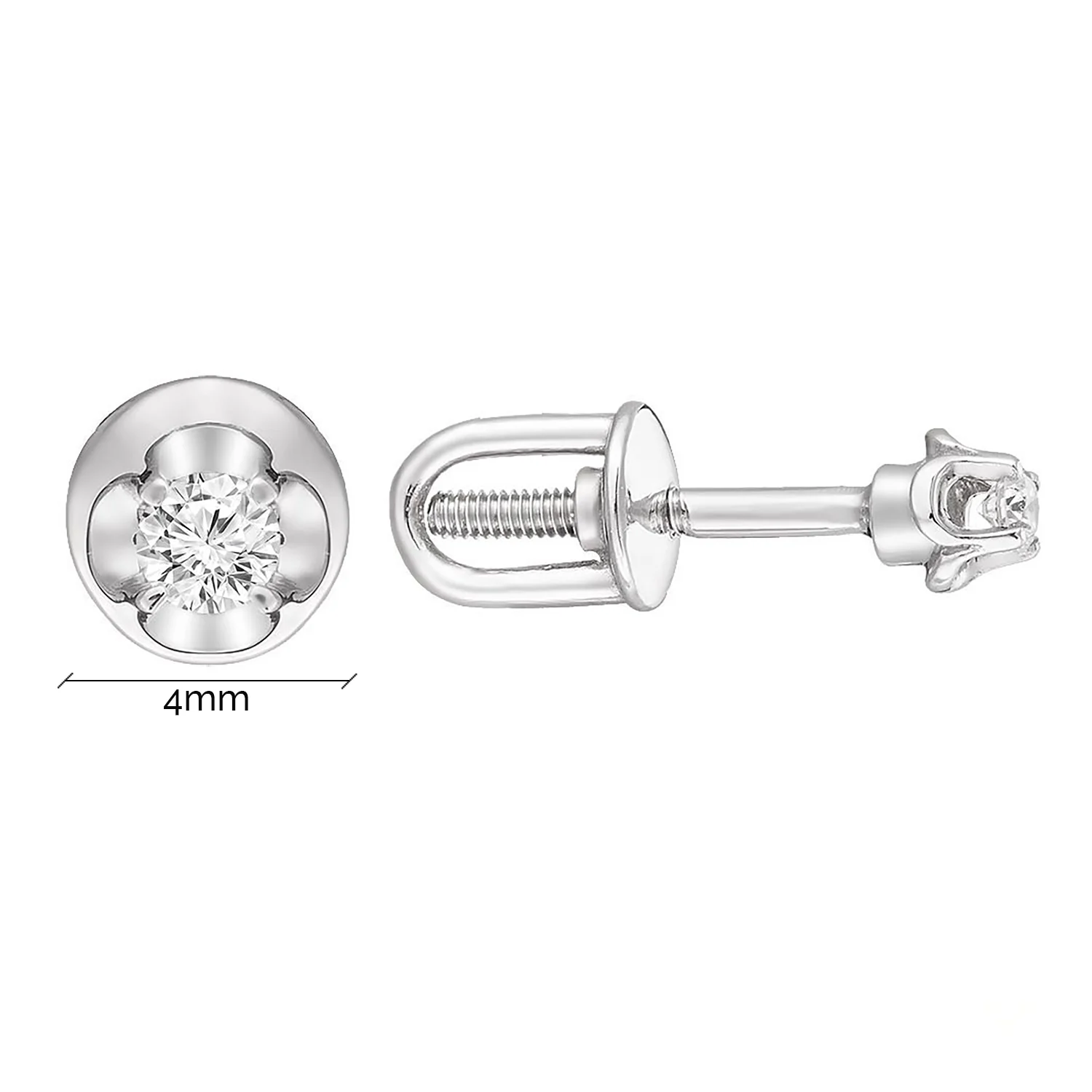 Серьги-гвоздики с бриллиантом в стиле минимализм в белом золоте - 1801730