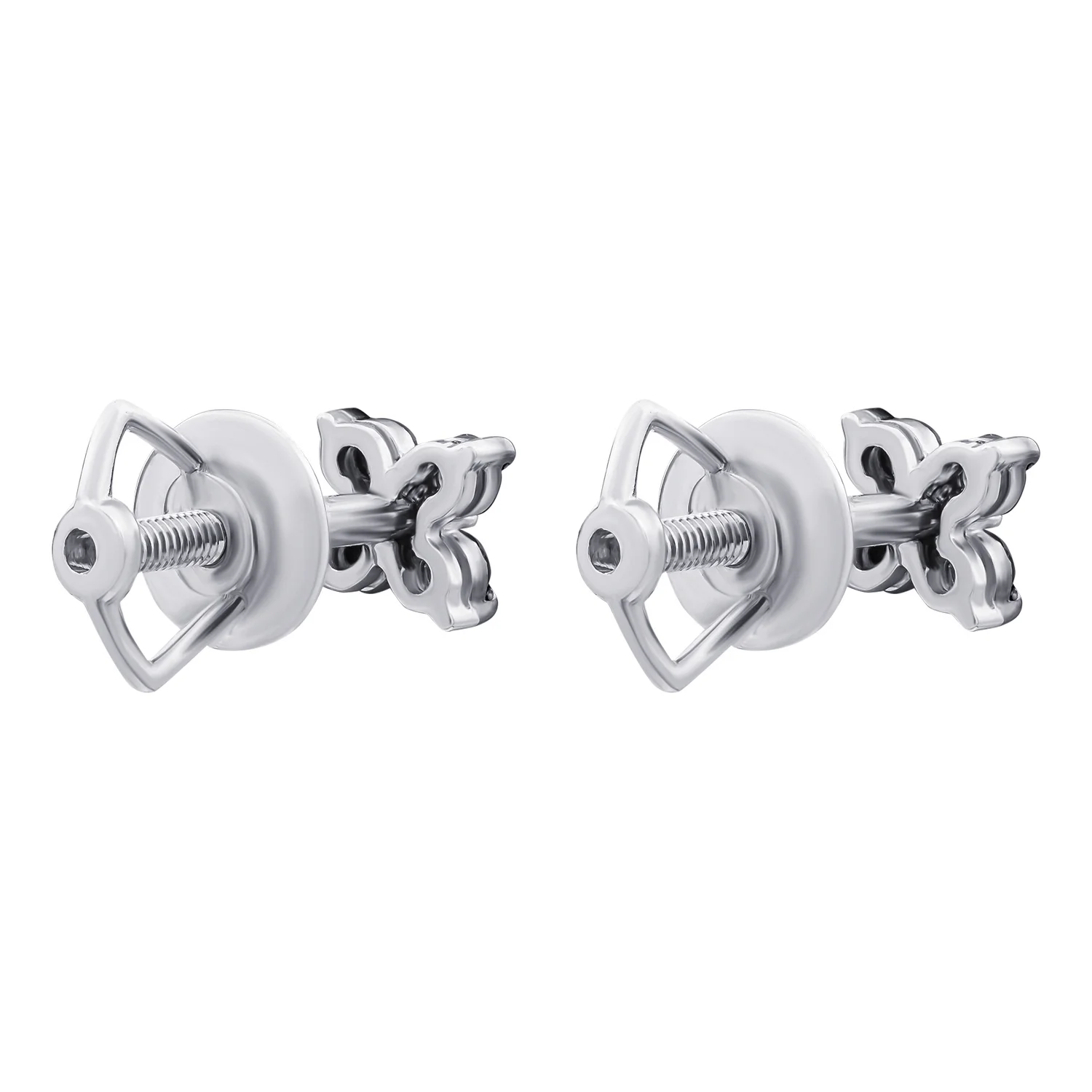 Сережки-гвоздики "Квадрат" из белого золота с изумрудом и бриллиантами - 1804068