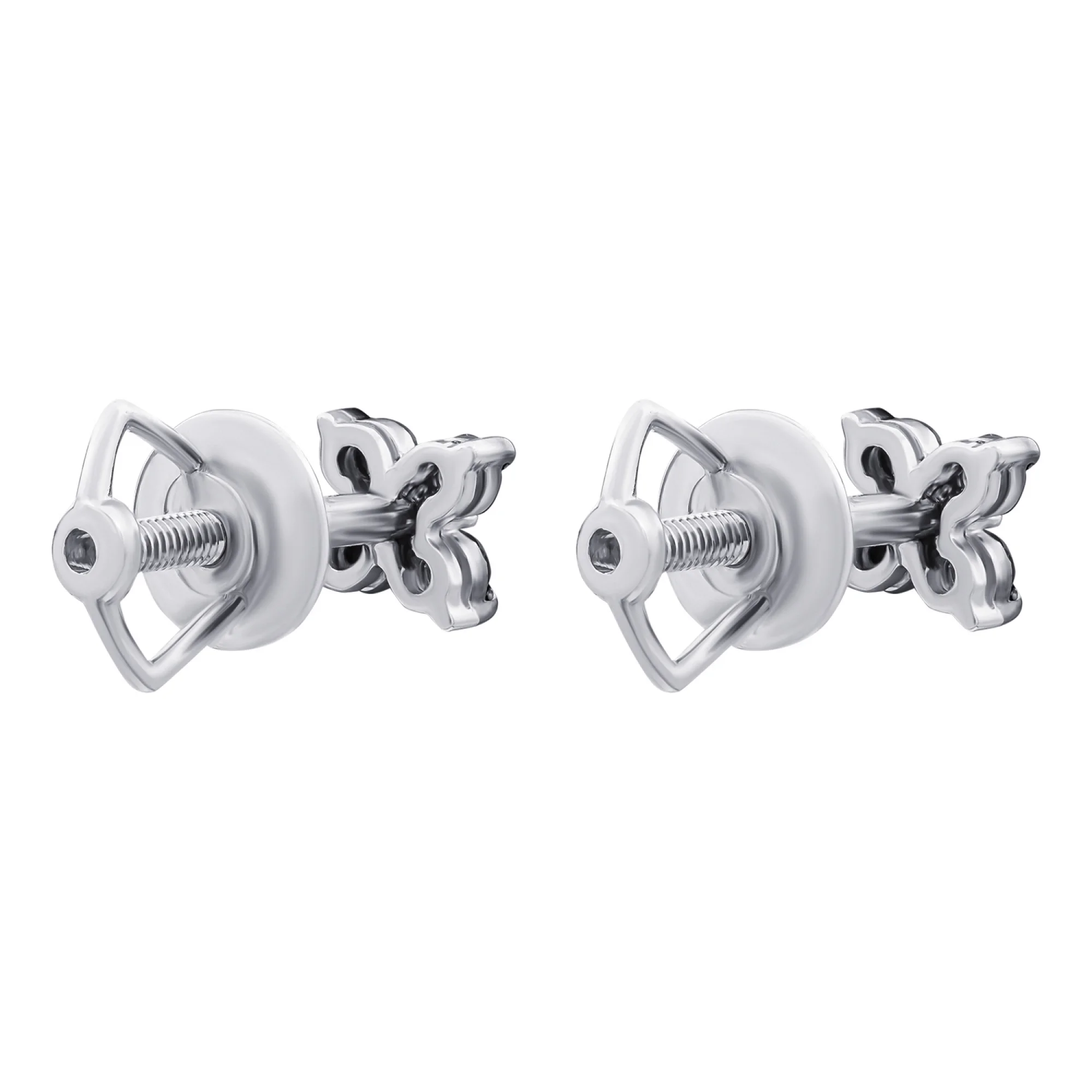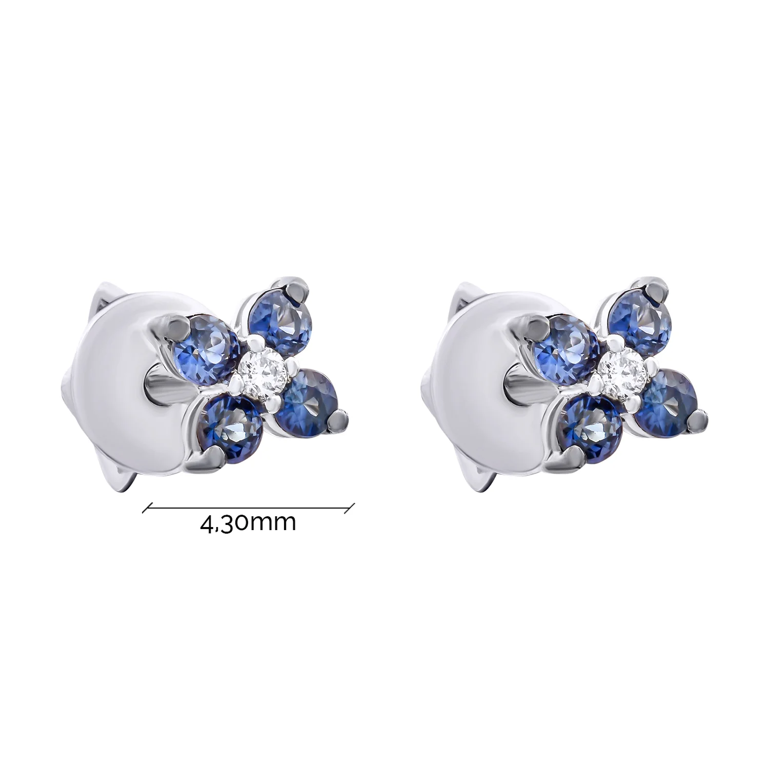 Сережки-гвоздики из белого золота с бриллиантами и сапфирами - 1829233