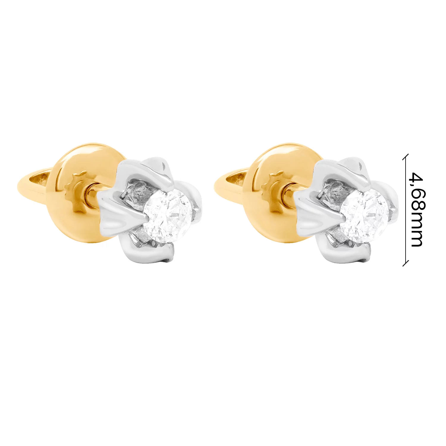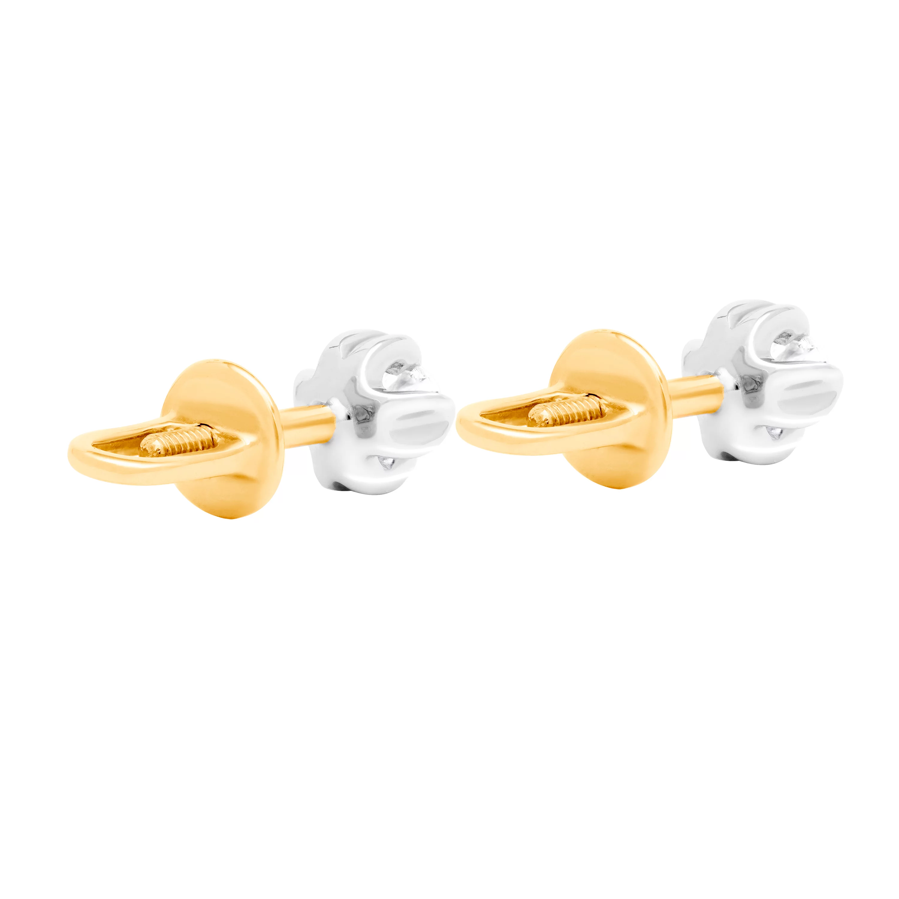 Сережки-гвоздики из комбинированного золота с бриллиантом - 1739136