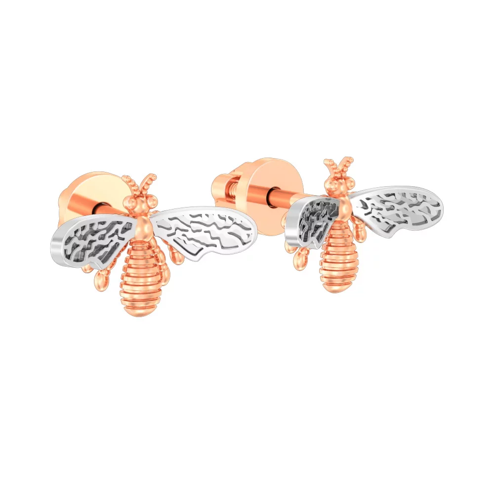 Сережки-гвоздики из комбинированого золота Пчелки - 965563