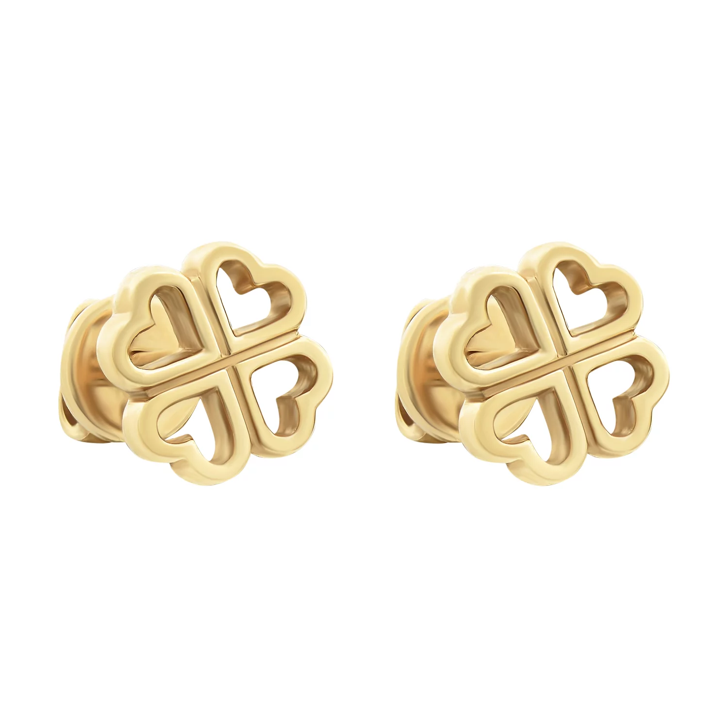 Стильные сережки-гвоздики "Треугольник" из комбинированного золота с алмазной гранью - 1918778