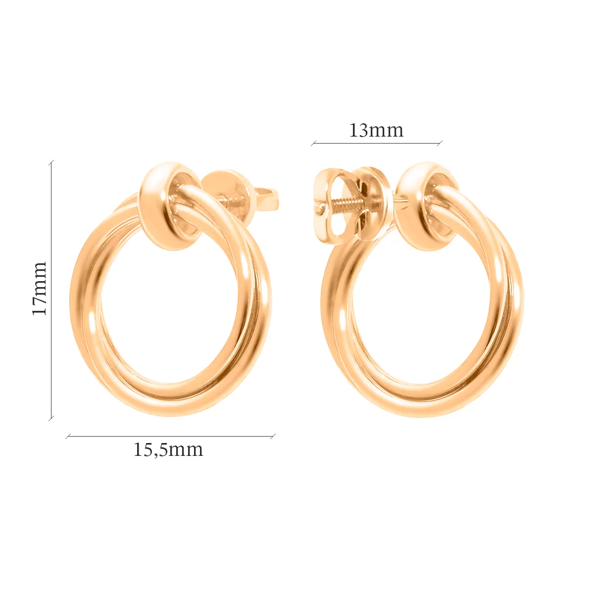 Стильные сережки-гвоздики "Треугольник" из комбинированного золота с алмазной гранью - 1918778