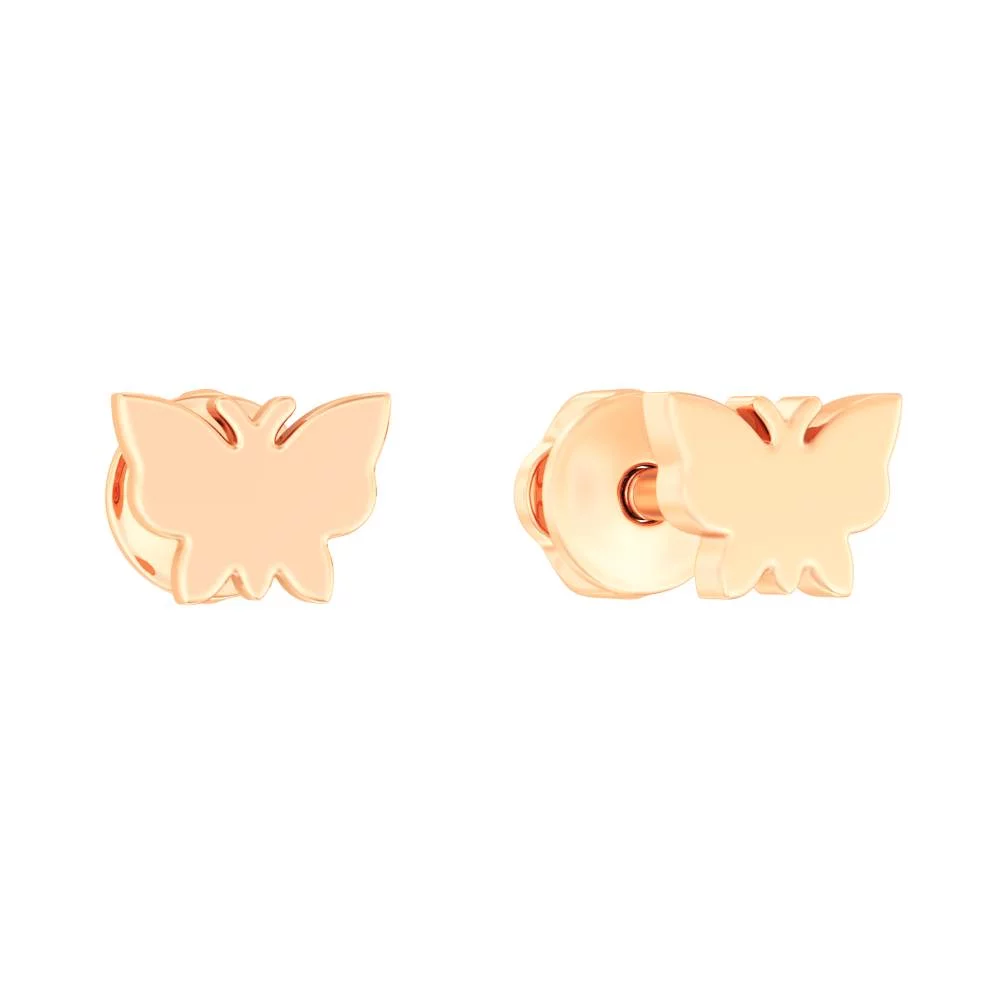 Сережки-гвоздики из красного золота "Бабочки" - 1450879
