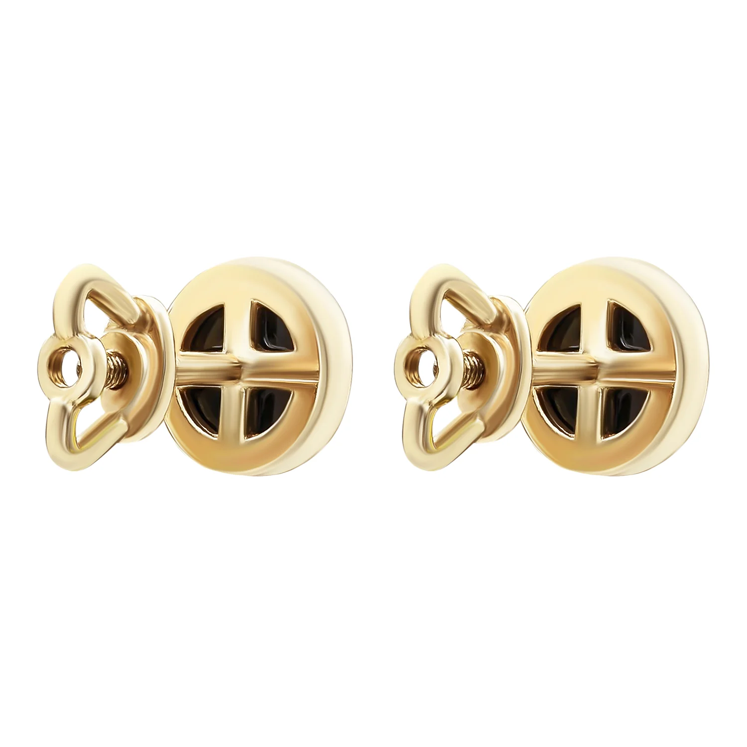 Элегантная моно сережка-гвоздик "Круг" из красного золота с эмалью - 1916085