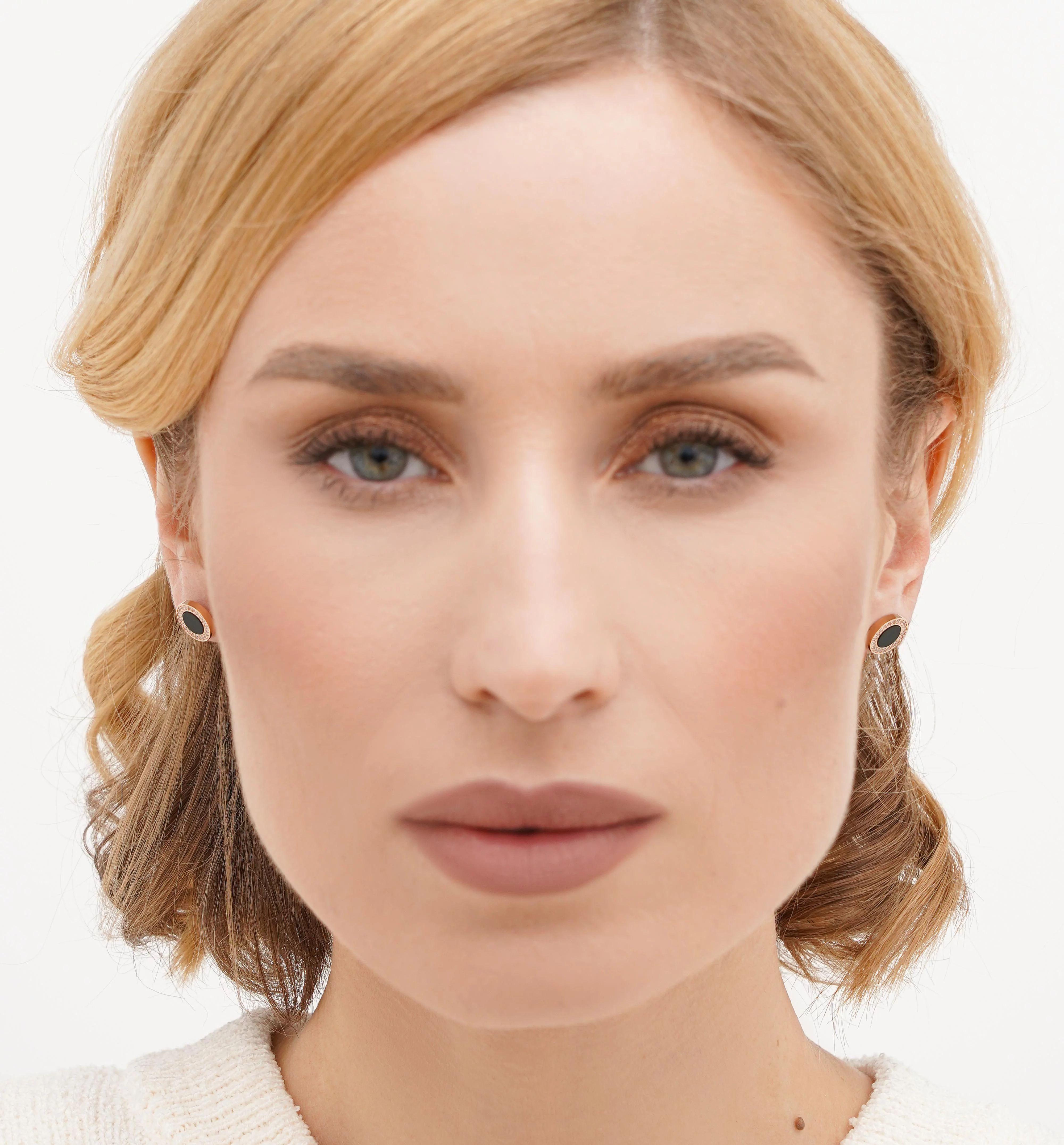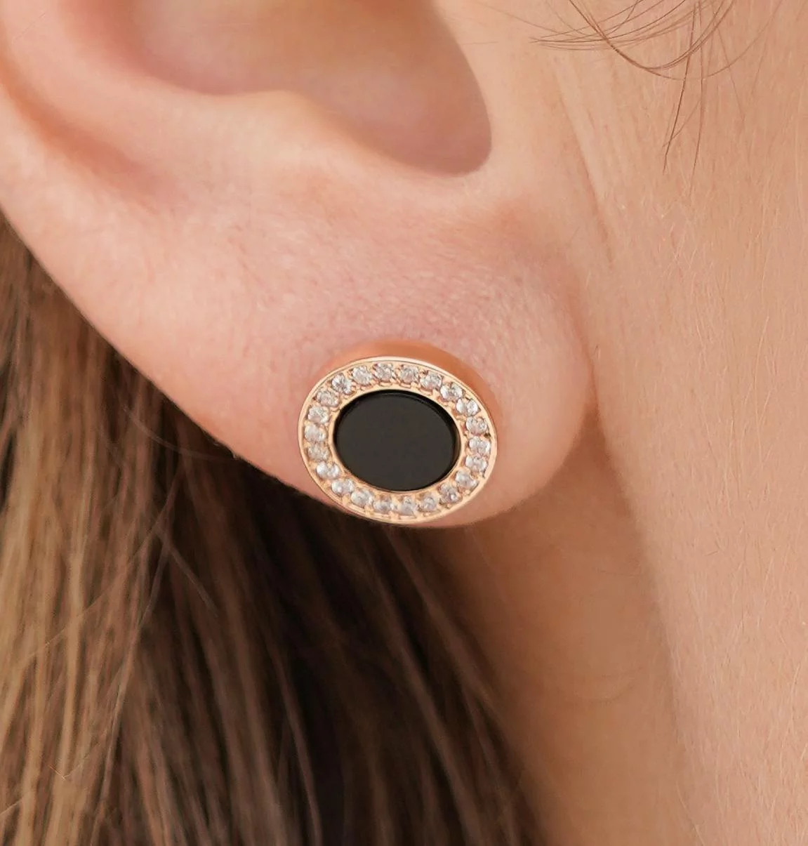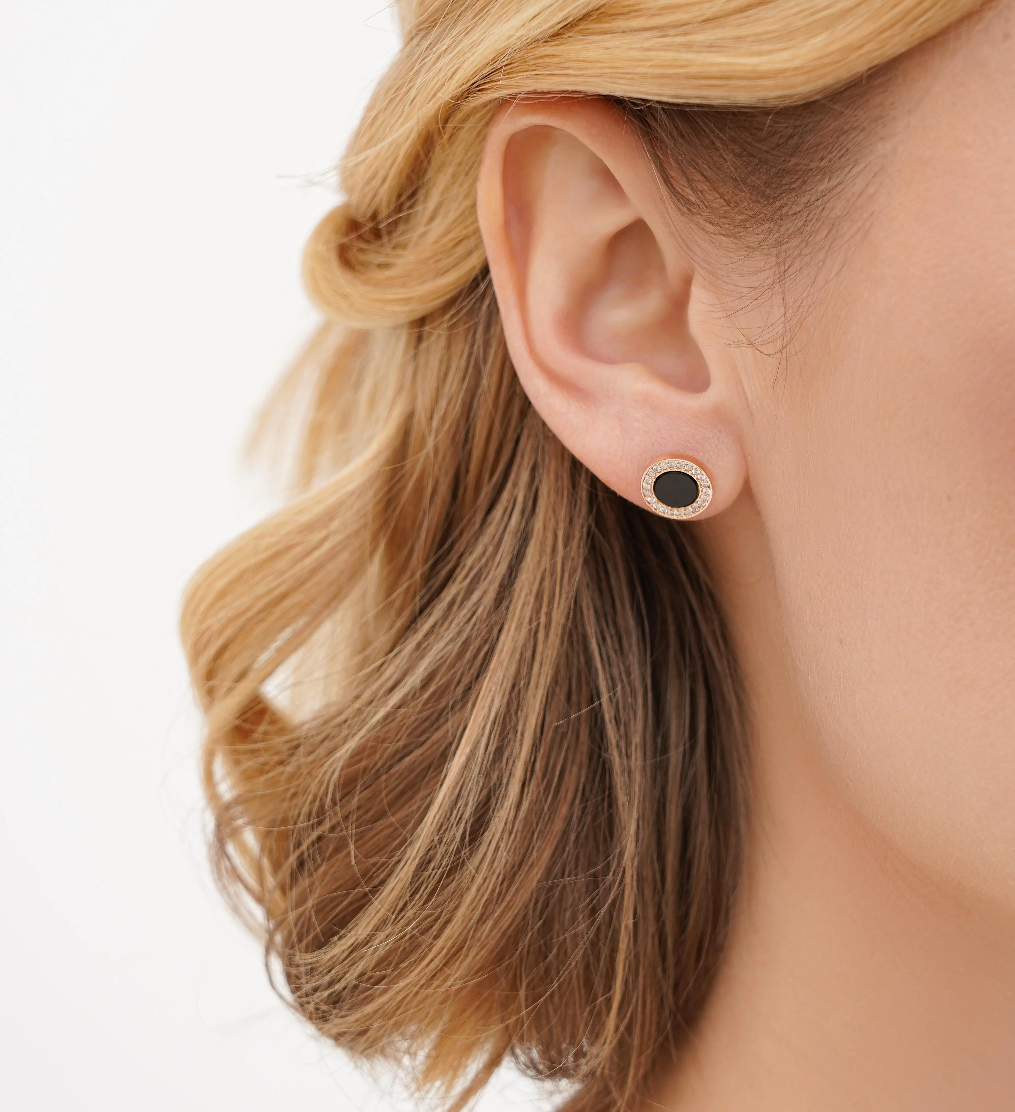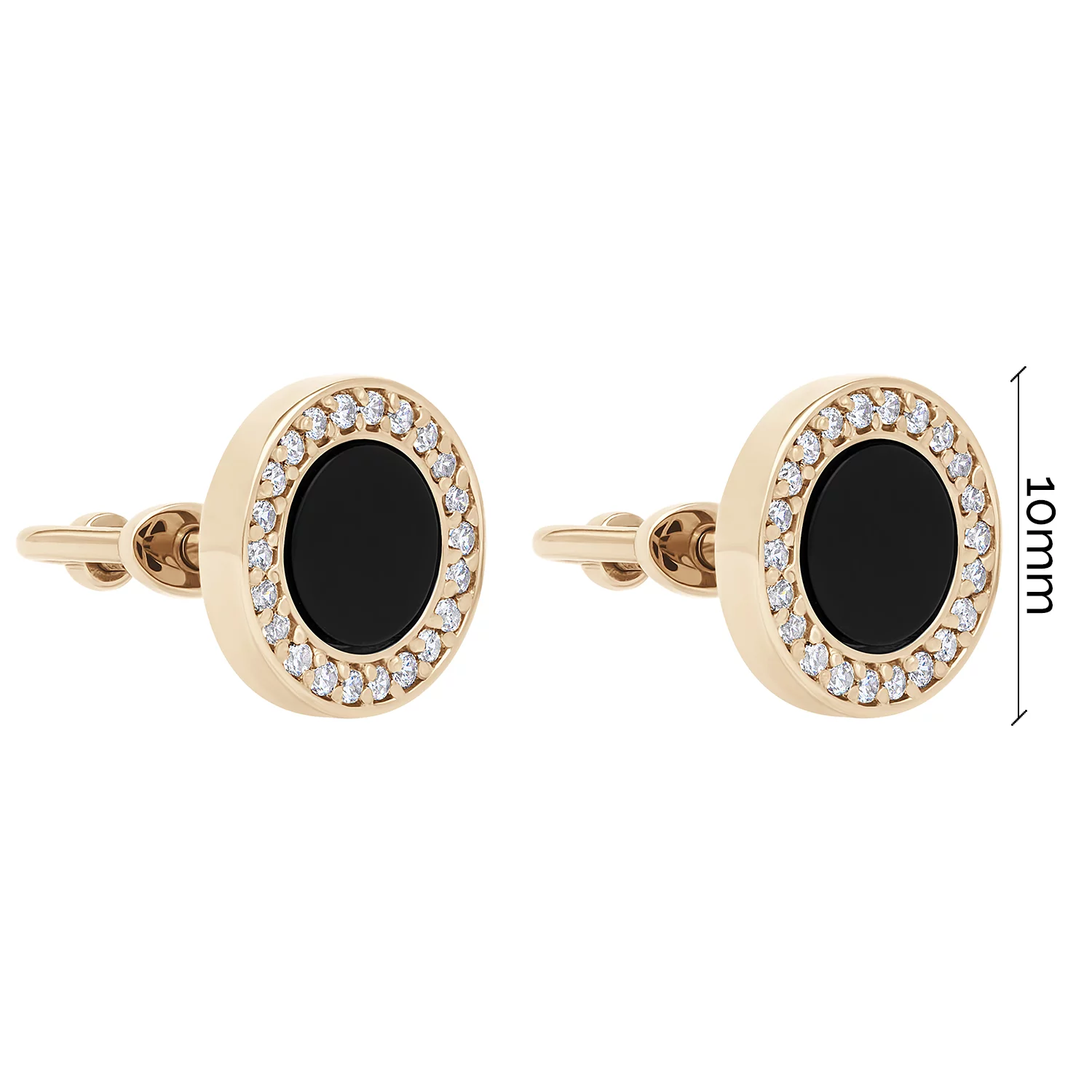Стильные сережки-пусеты "Круг" в красном золоте с эмалью и фианитами - 1958570