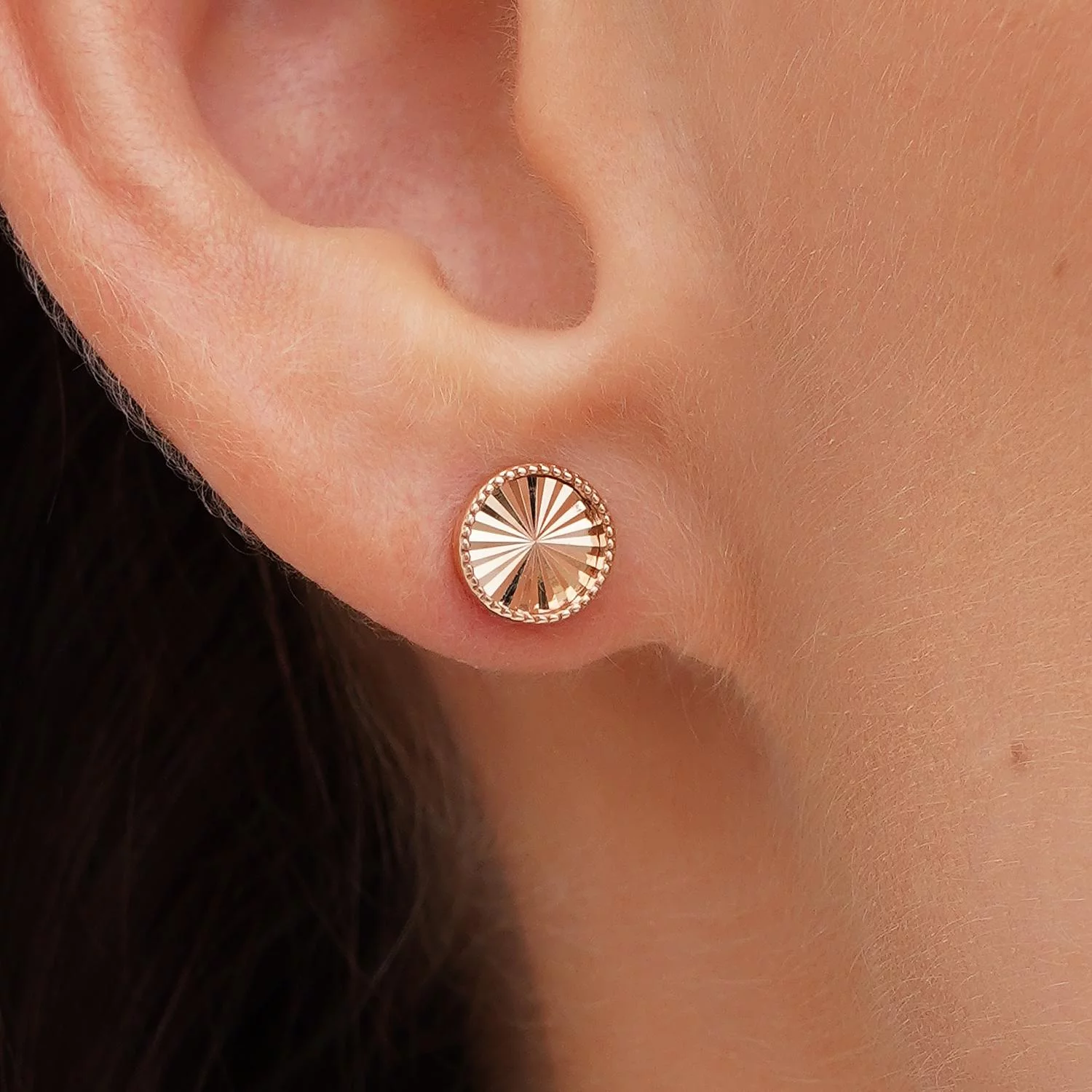 Сережки-гвоздики "Цветок" из комбинированного золота с алмазной гранью - 1918776