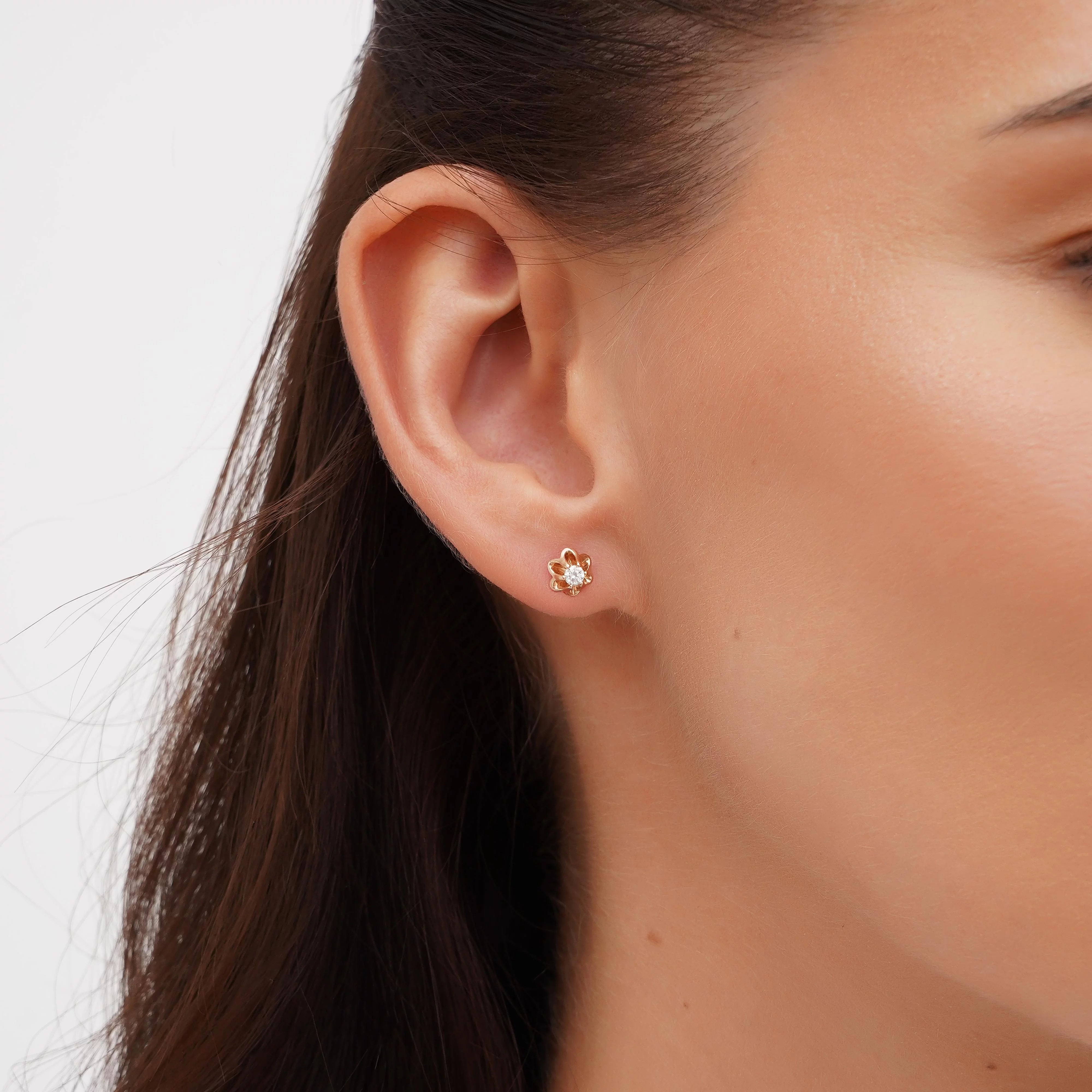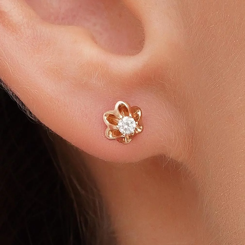Серьги-гвоздики с бриллиантом в стиле минимализм в белом золоте - 1801730
