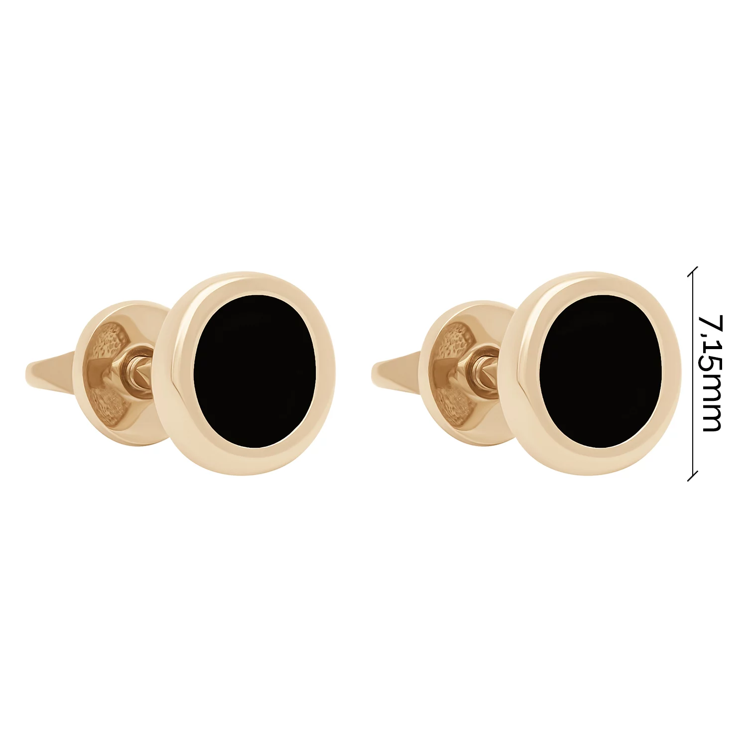 Элегантные сережки-гвоздики "Монетка" из красного золота с эмалью - 1923478