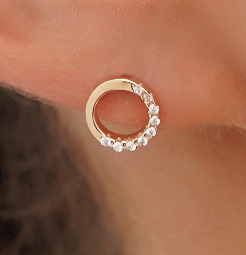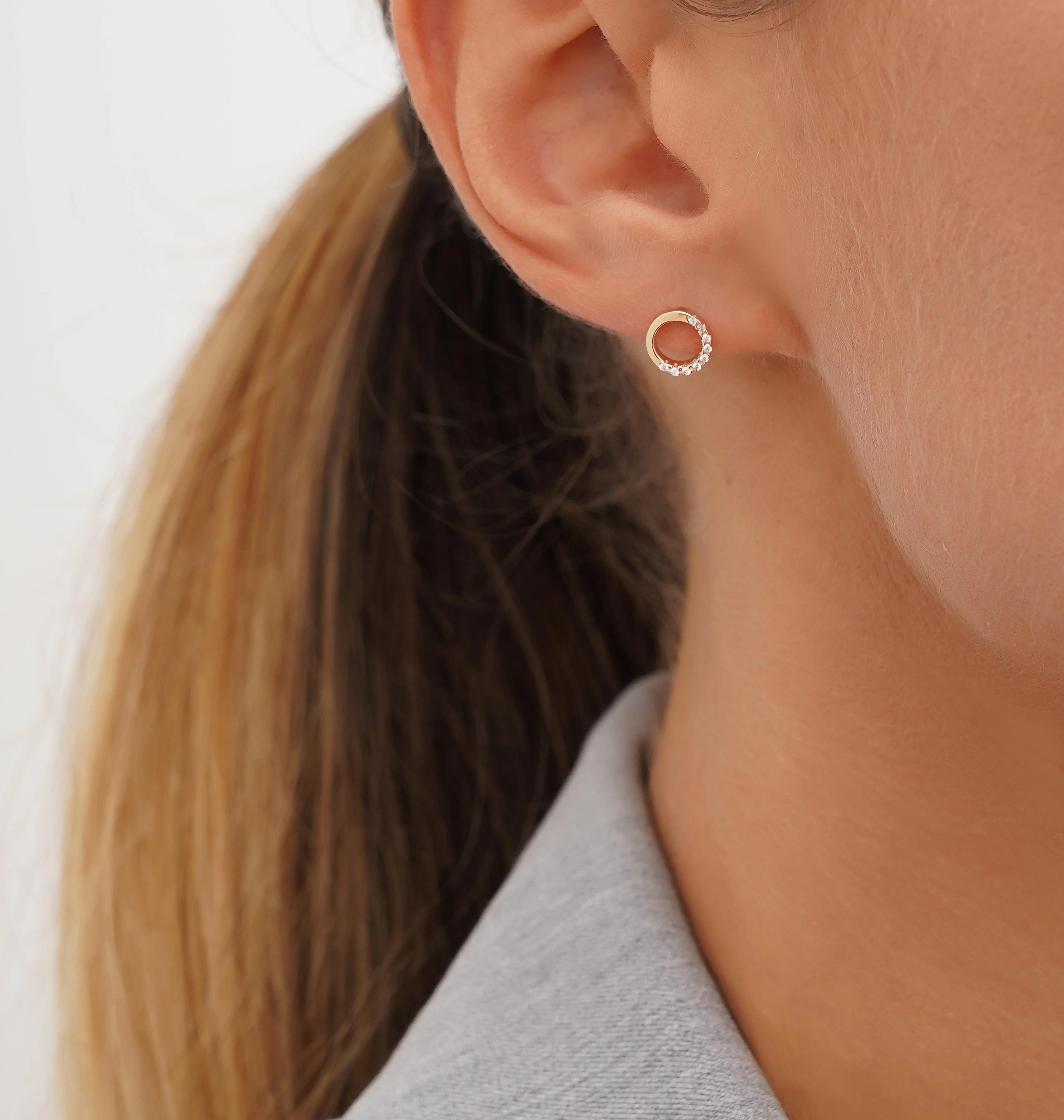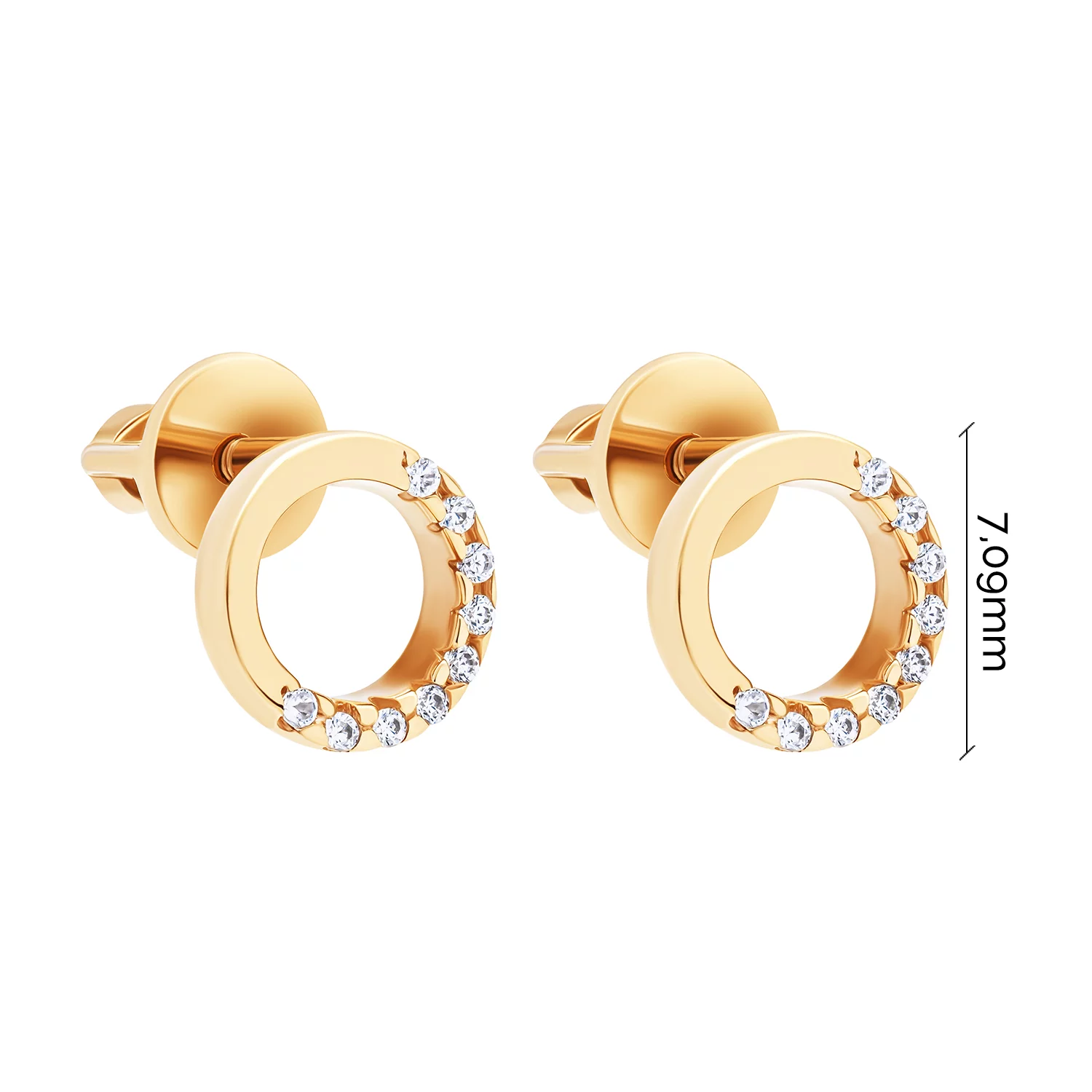 Стильные сережки-пусеты "Круг" в красном золоте с эмалью и фианитами - 1958570