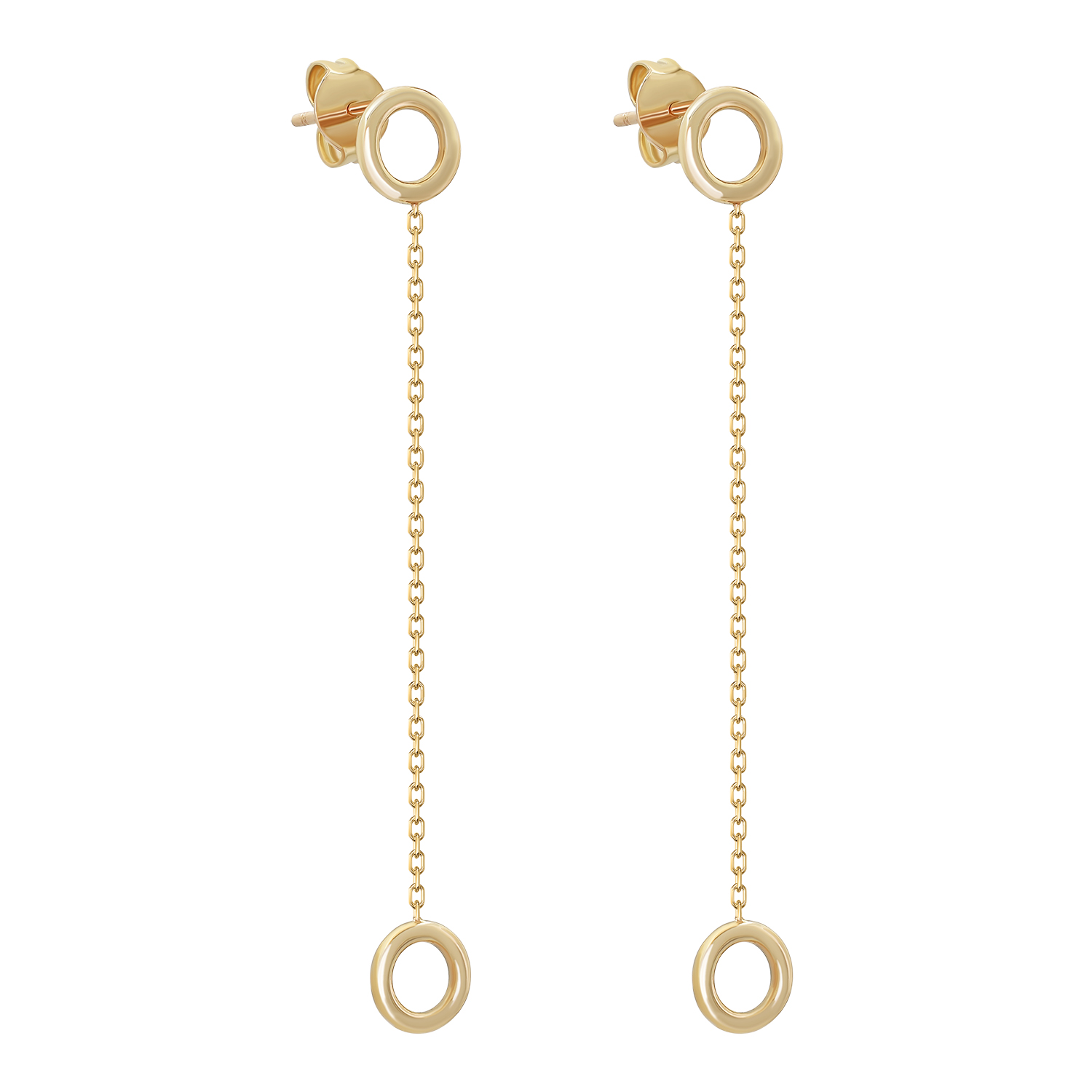 Сережки-гвоздики из красного золота с подвесками кружочки - 1263674