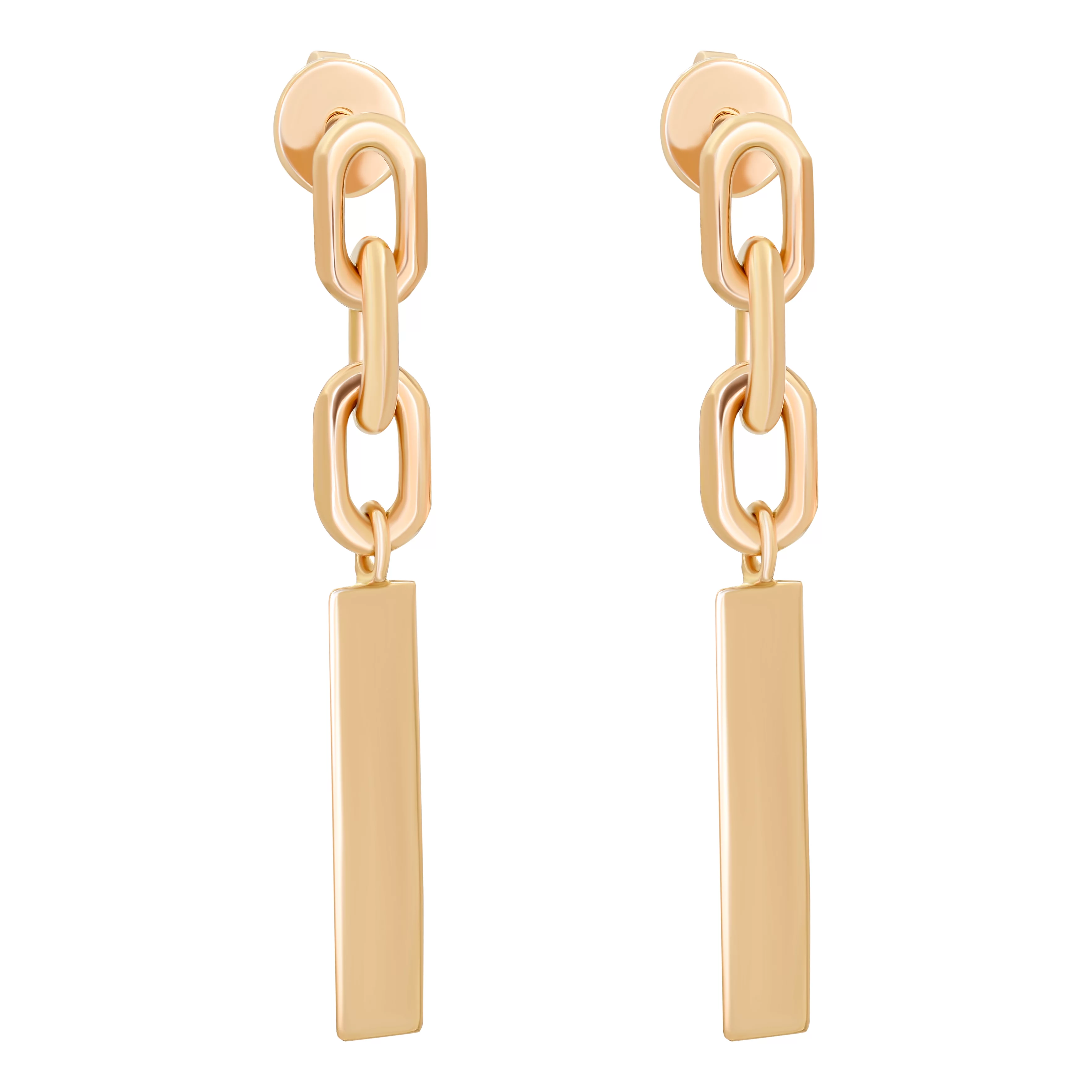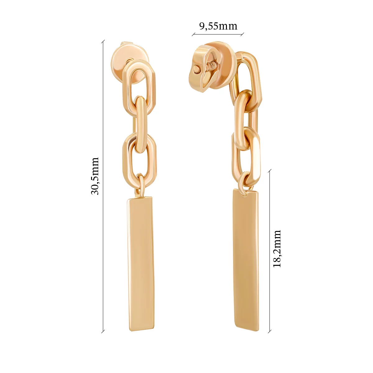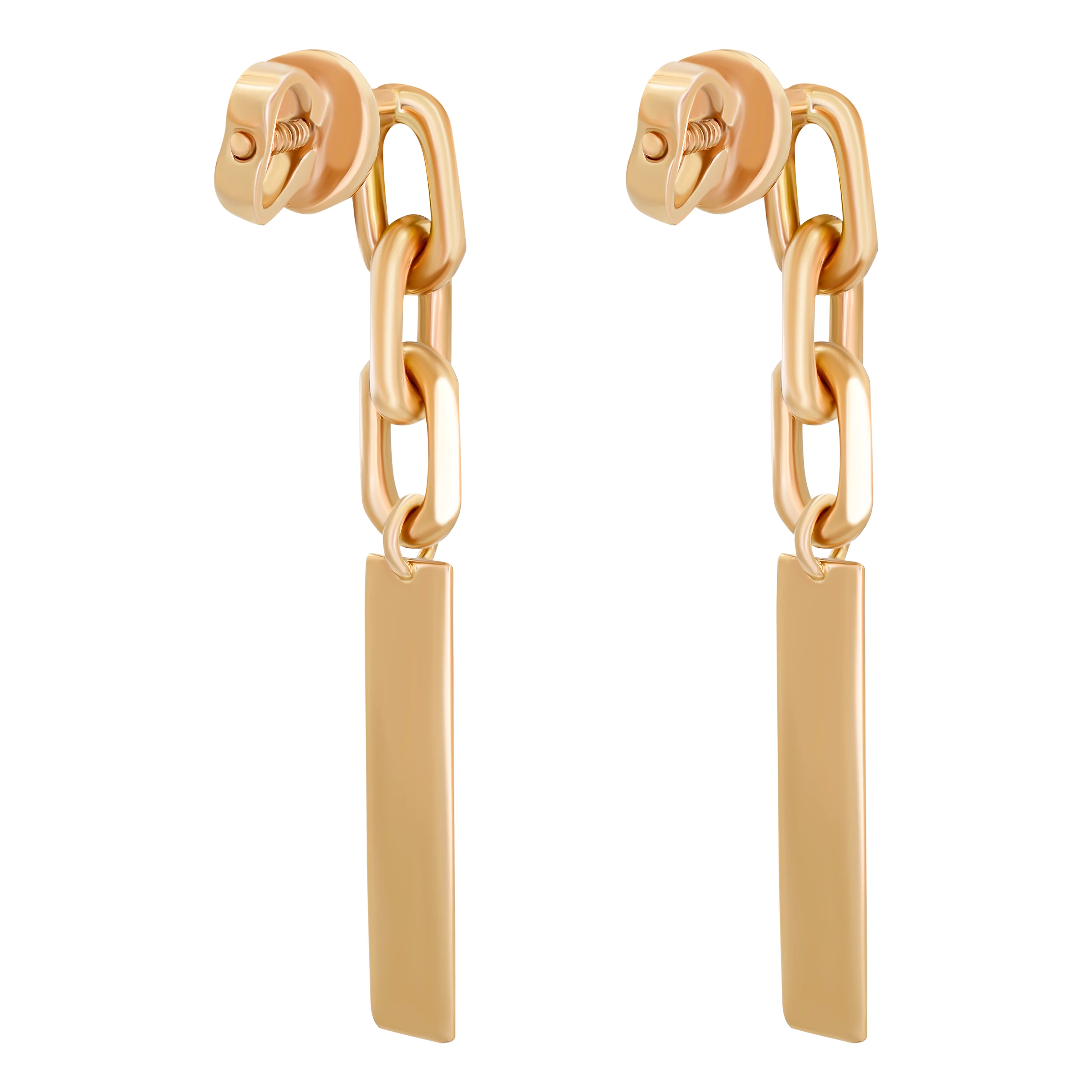 Сережки-гвоздики из красного золота с подвесками - 887699
