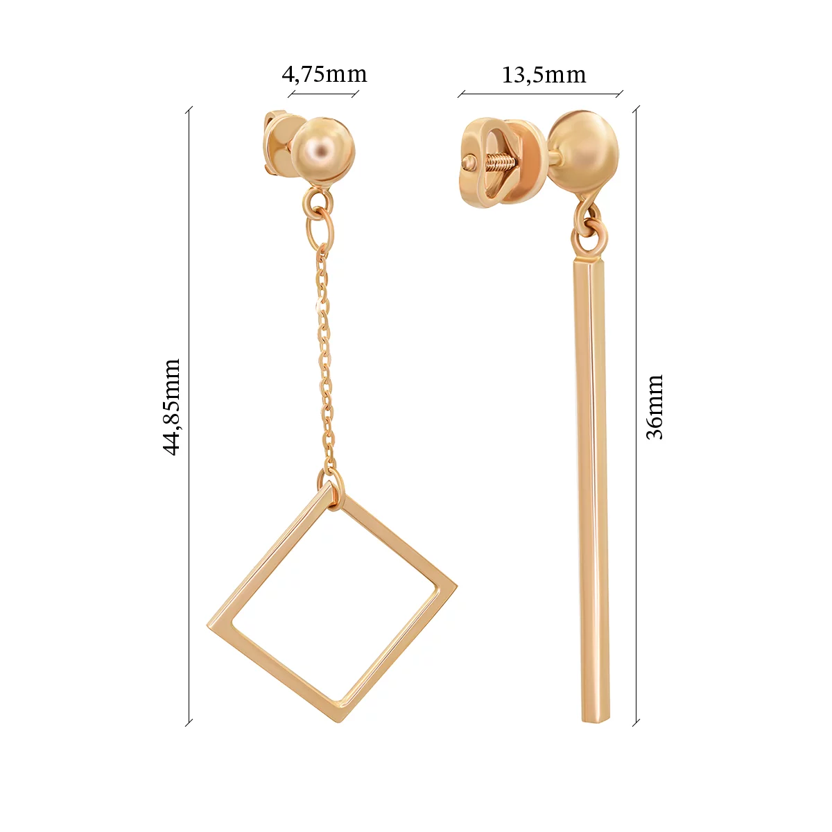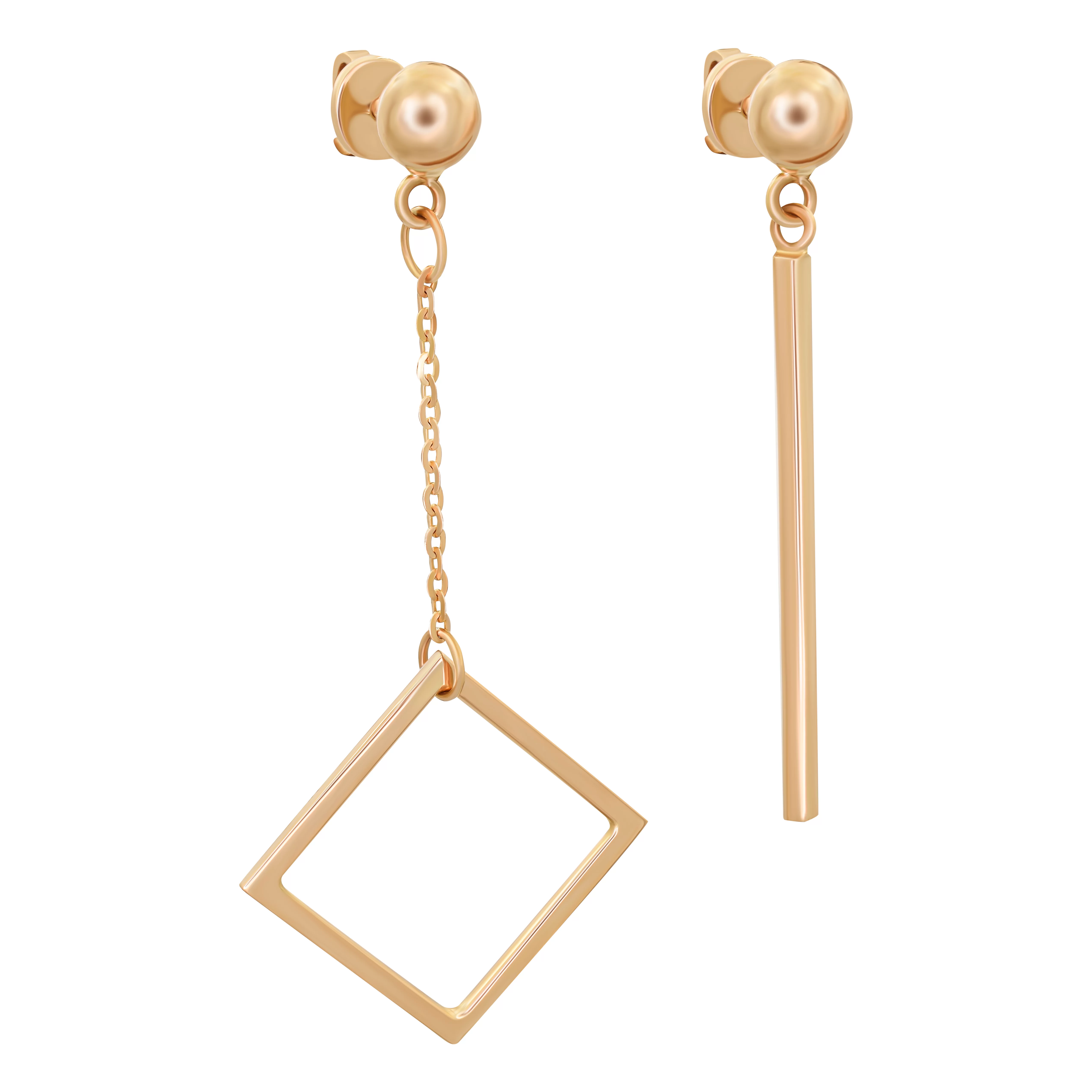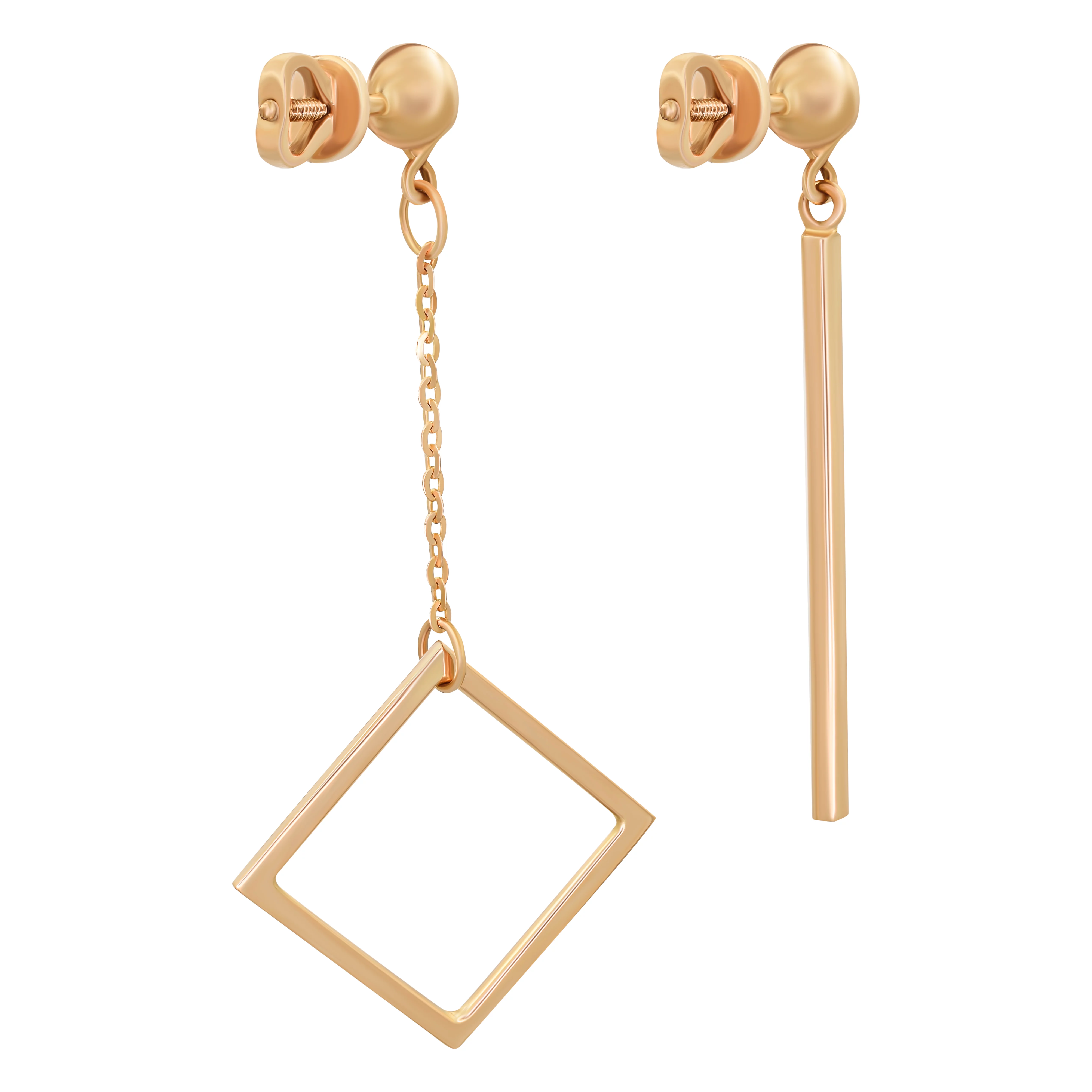 Сережки-гвоздики из красного золота с подвесками - 887703