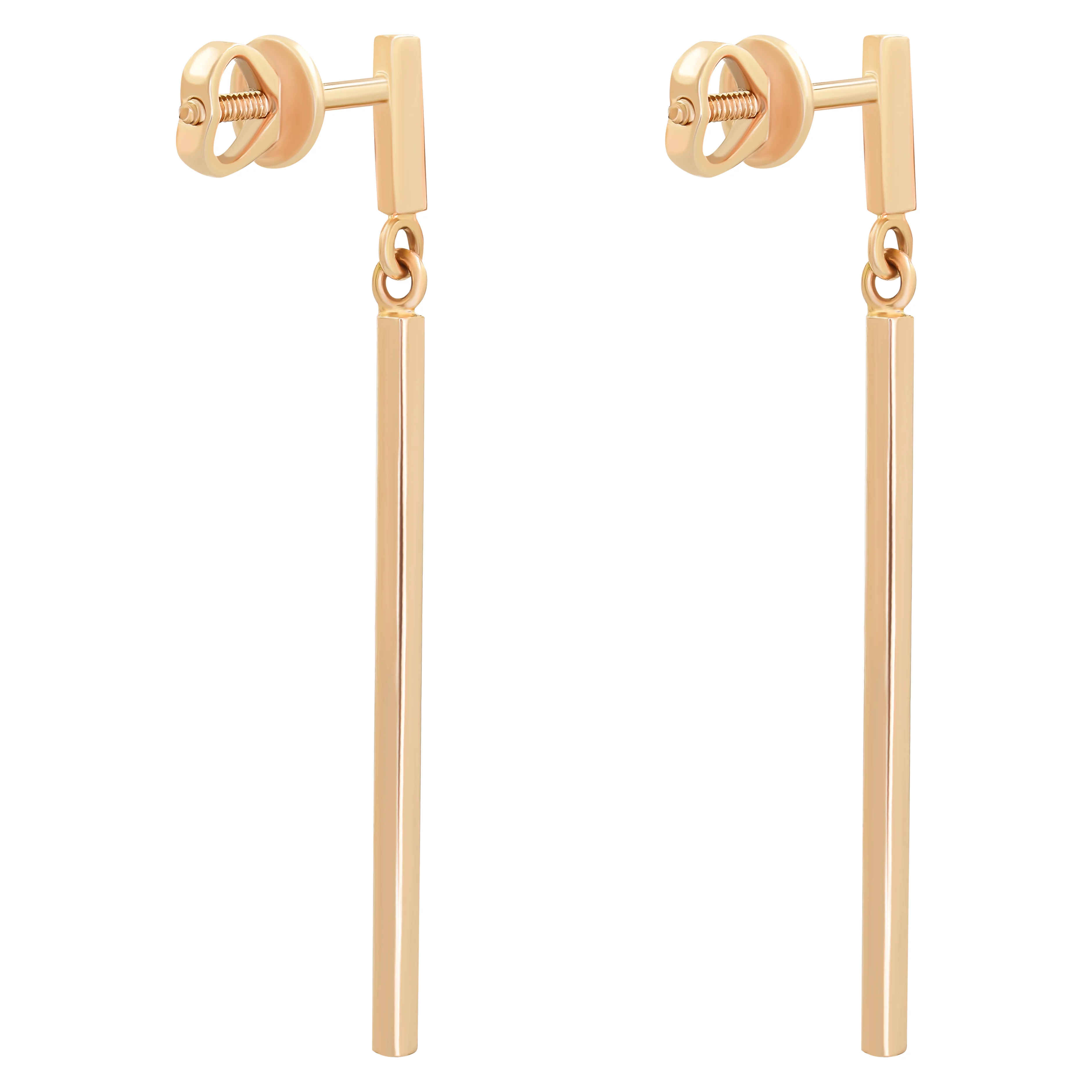 Сережки-гвоздики из красного золота с подвесками - 889542