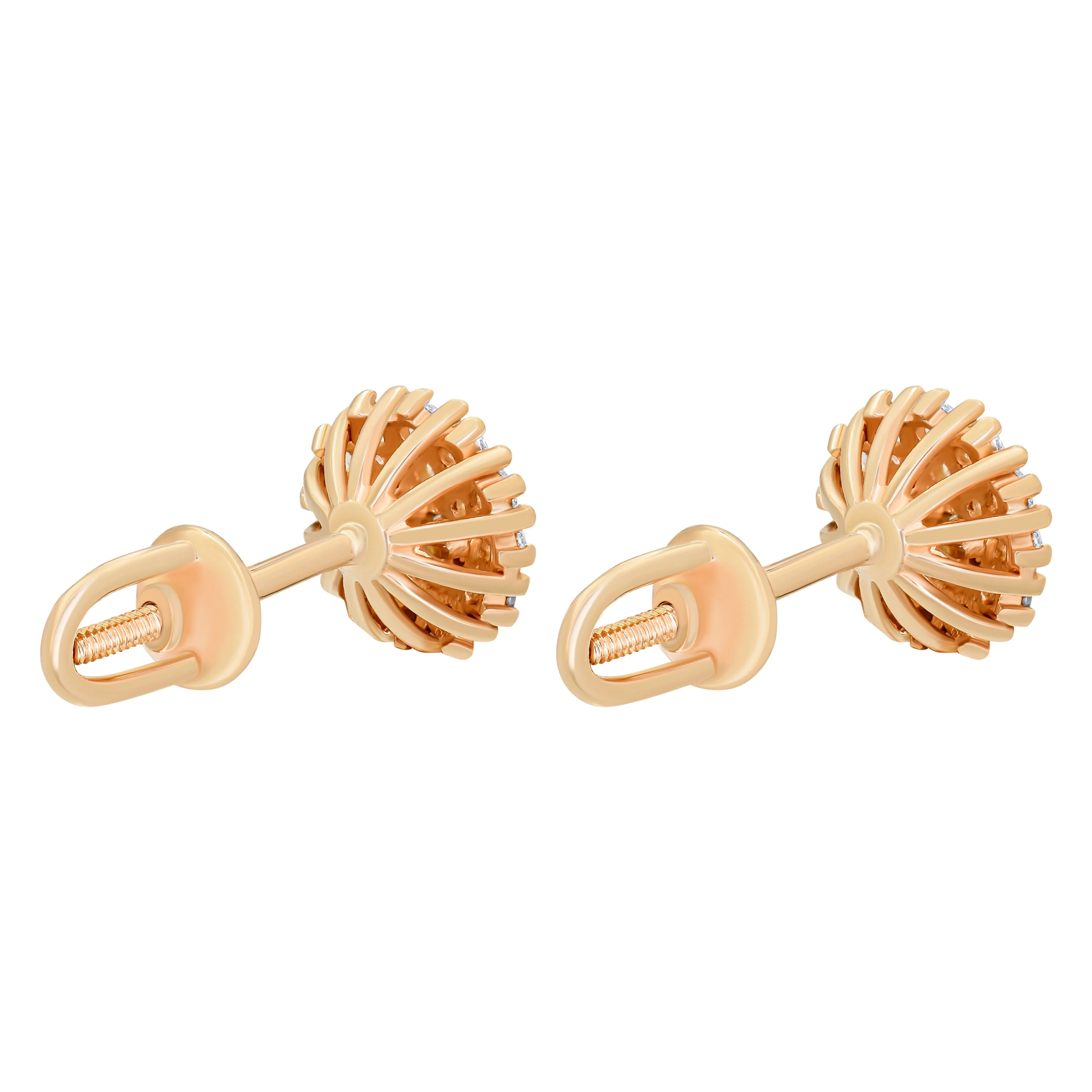 Экстравагантные сережки-гвоздики "Звездочка" из красного золота с фианитами - 1872232