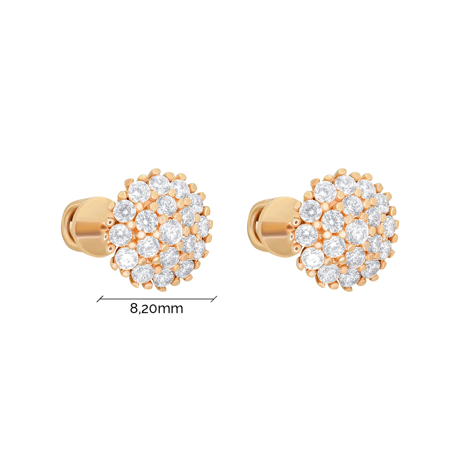 Сережки-гвоздики из красного золота с фианитами "Дерево жизни" - 1095072