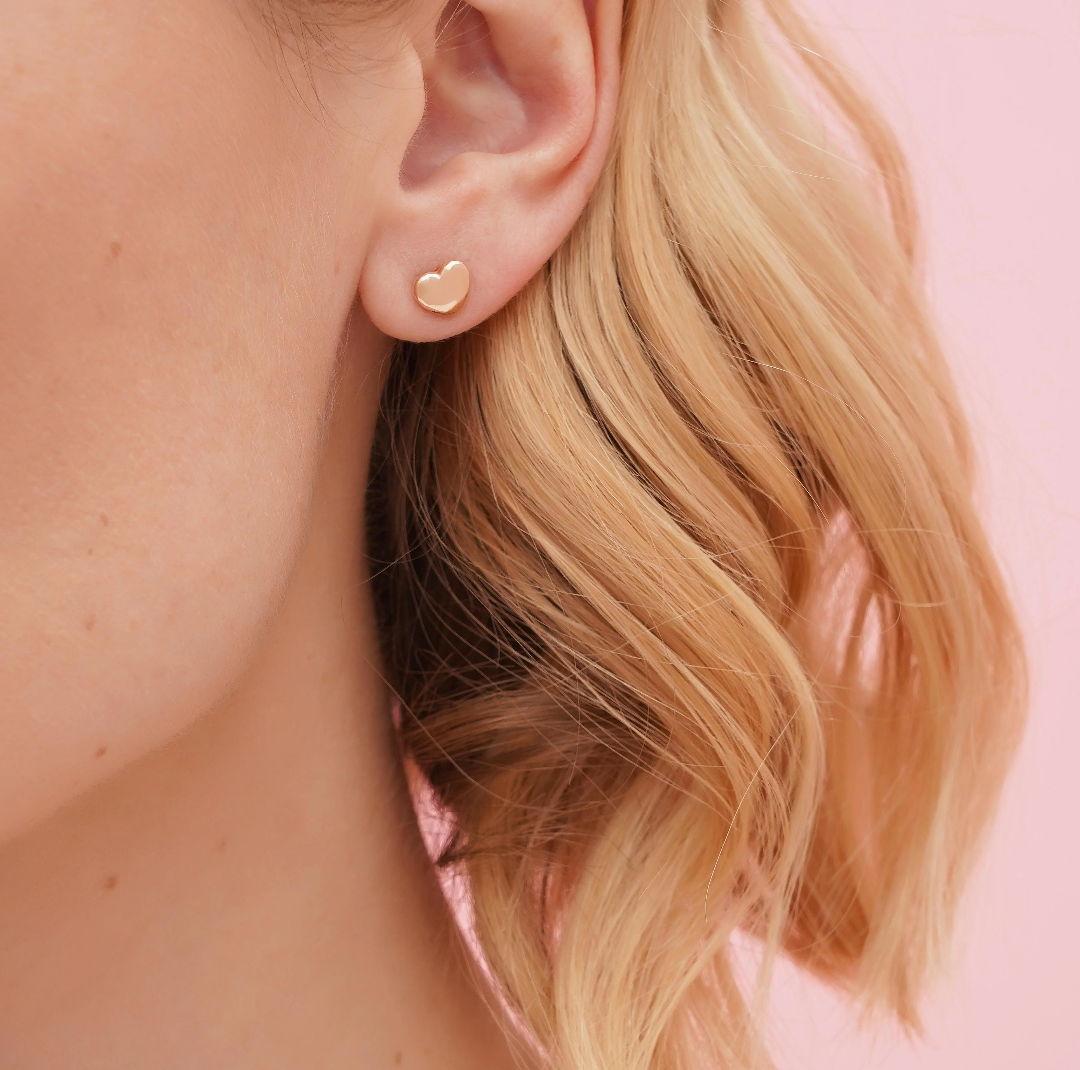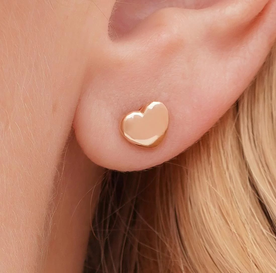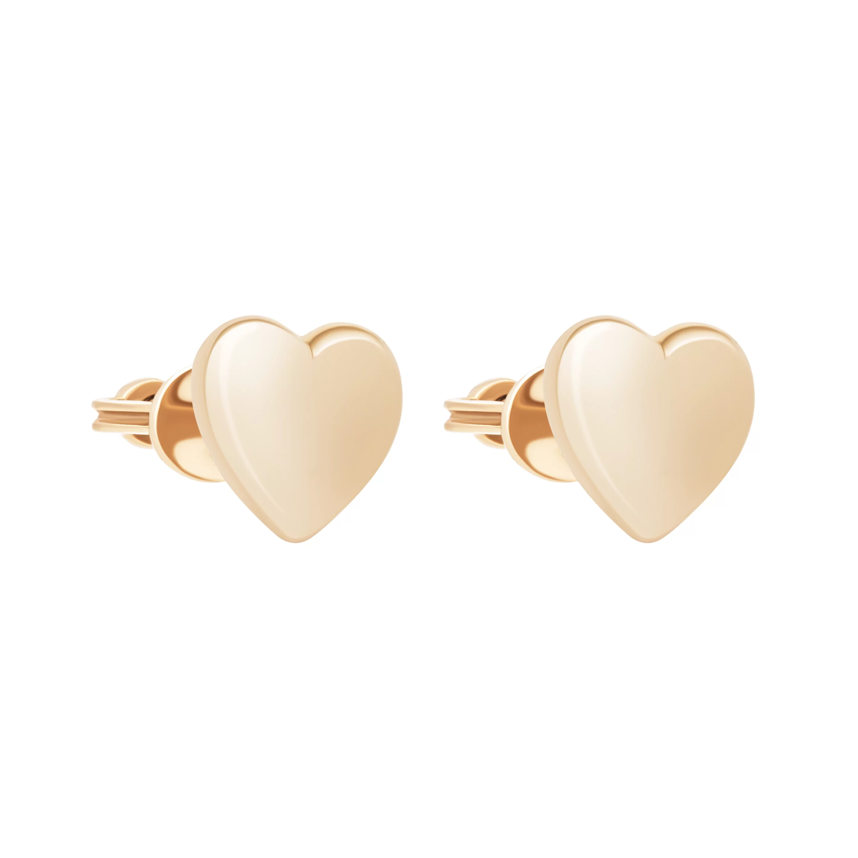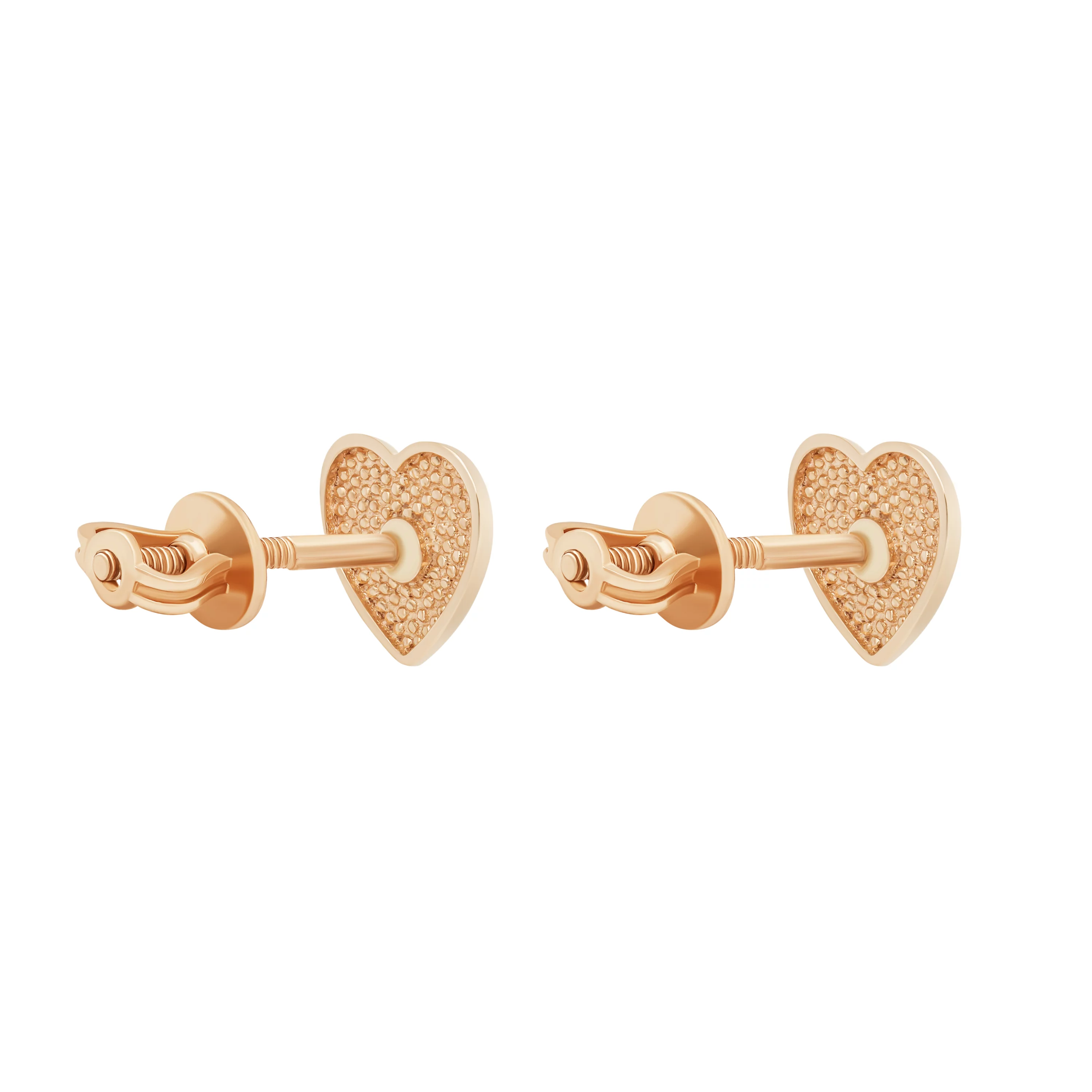 Сережки-гвоздики "Сердце" в романтичном стиле из красного золота и с фианитами - 1859350