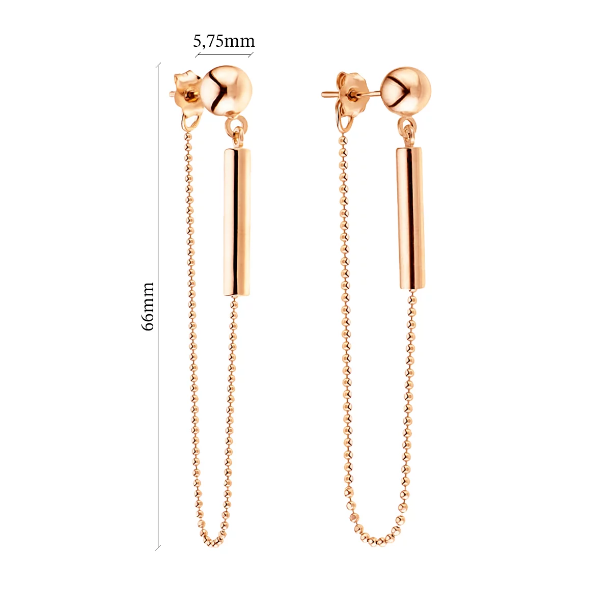 Сережки-гвоздики из красного золота "Шарики" с подвесками - 603317