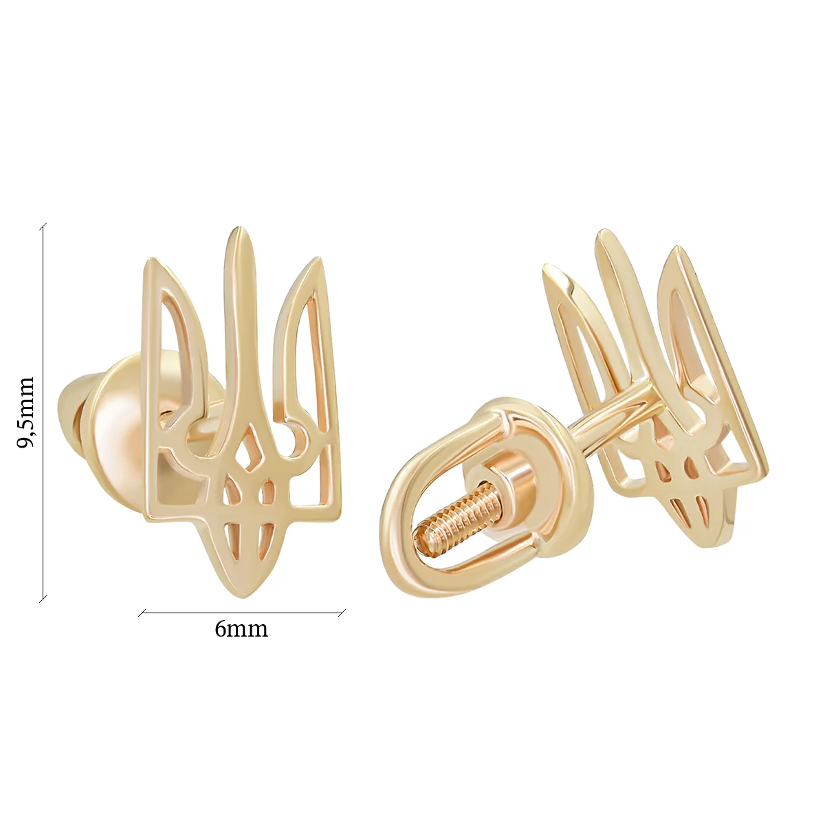 Сережки-гвоздики из красного золота "В сердце с Украиной" с бриллиантом и эмалью - 1499951