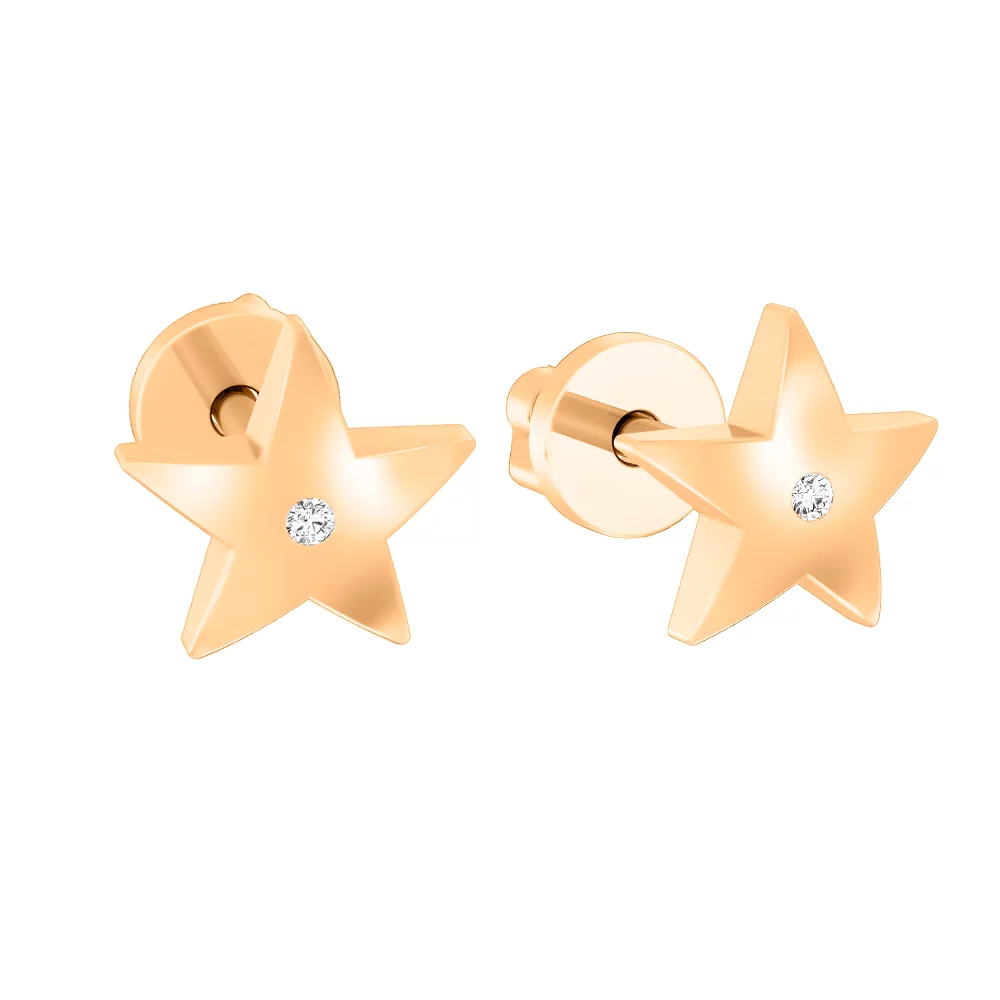 Сережки-гвоздики из красного золота "Звездочки" с фианитом - 1450809