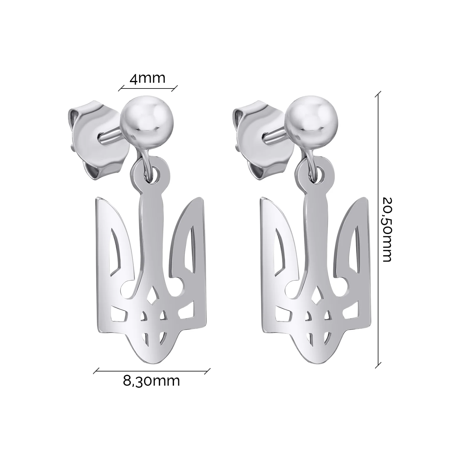 Сережки-гвоздики с подвесами из серебра "Герб Украины-Тризуб" - 1501196