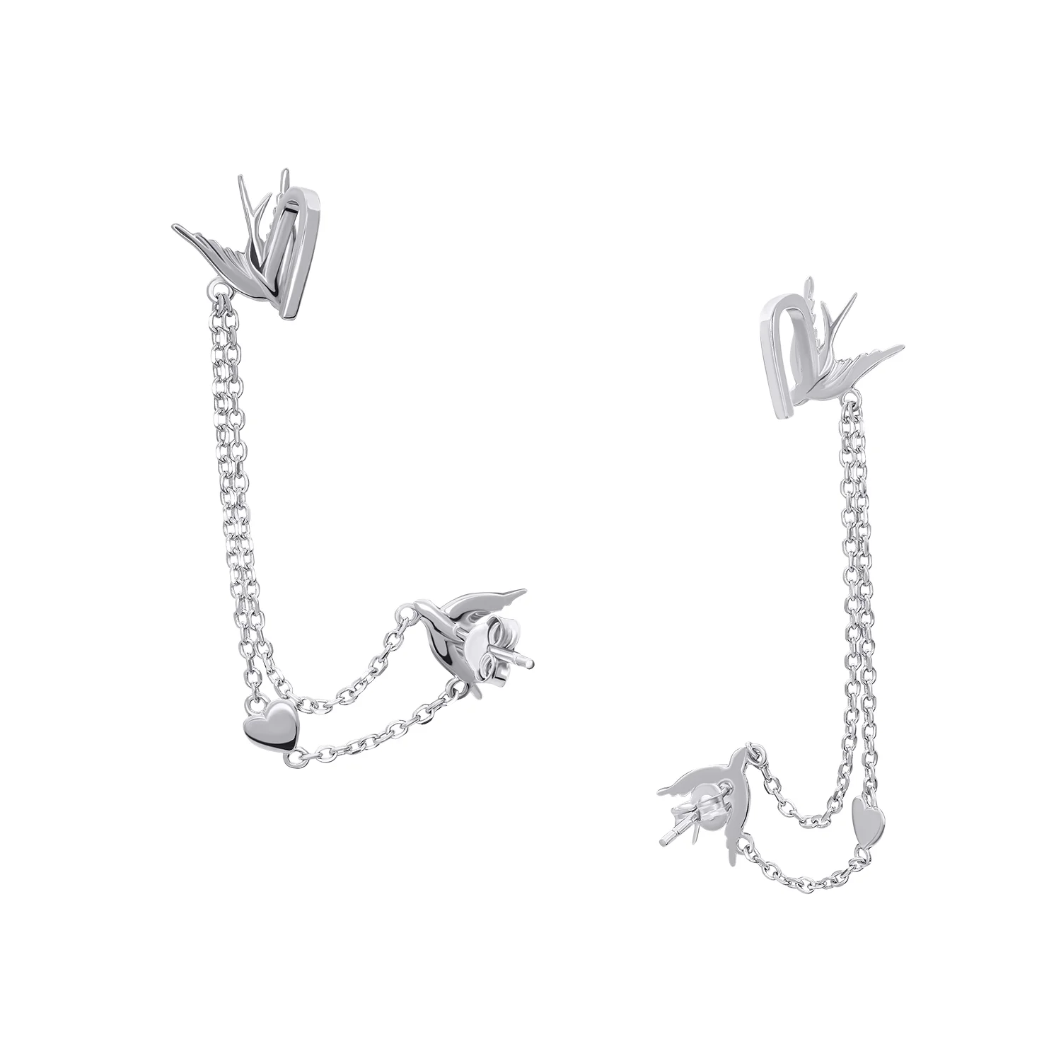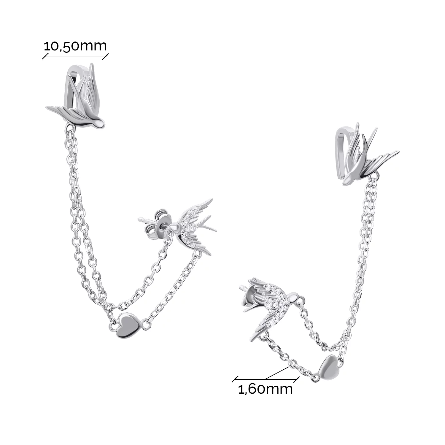 Сережки-гвоздики из серебра "Ласточки" с фианитом - 1468823