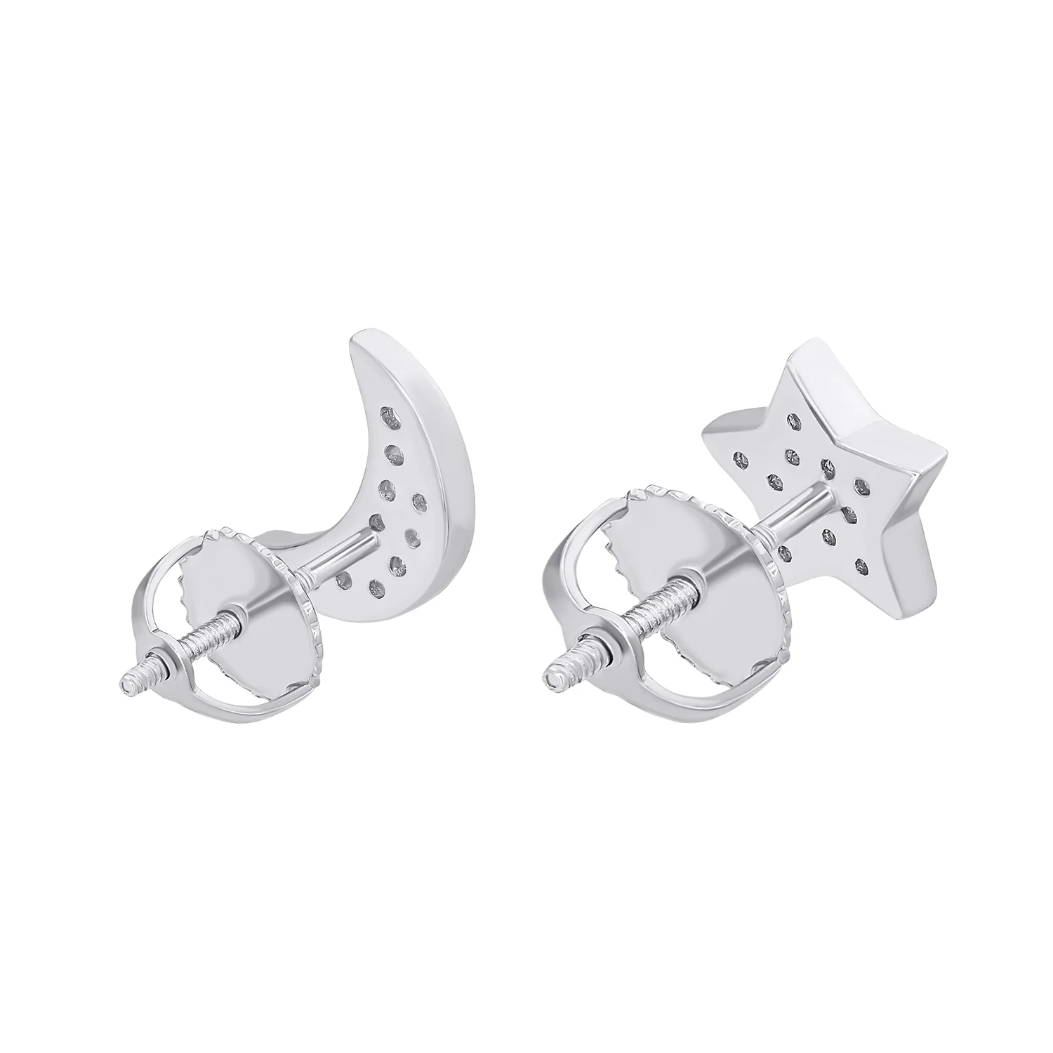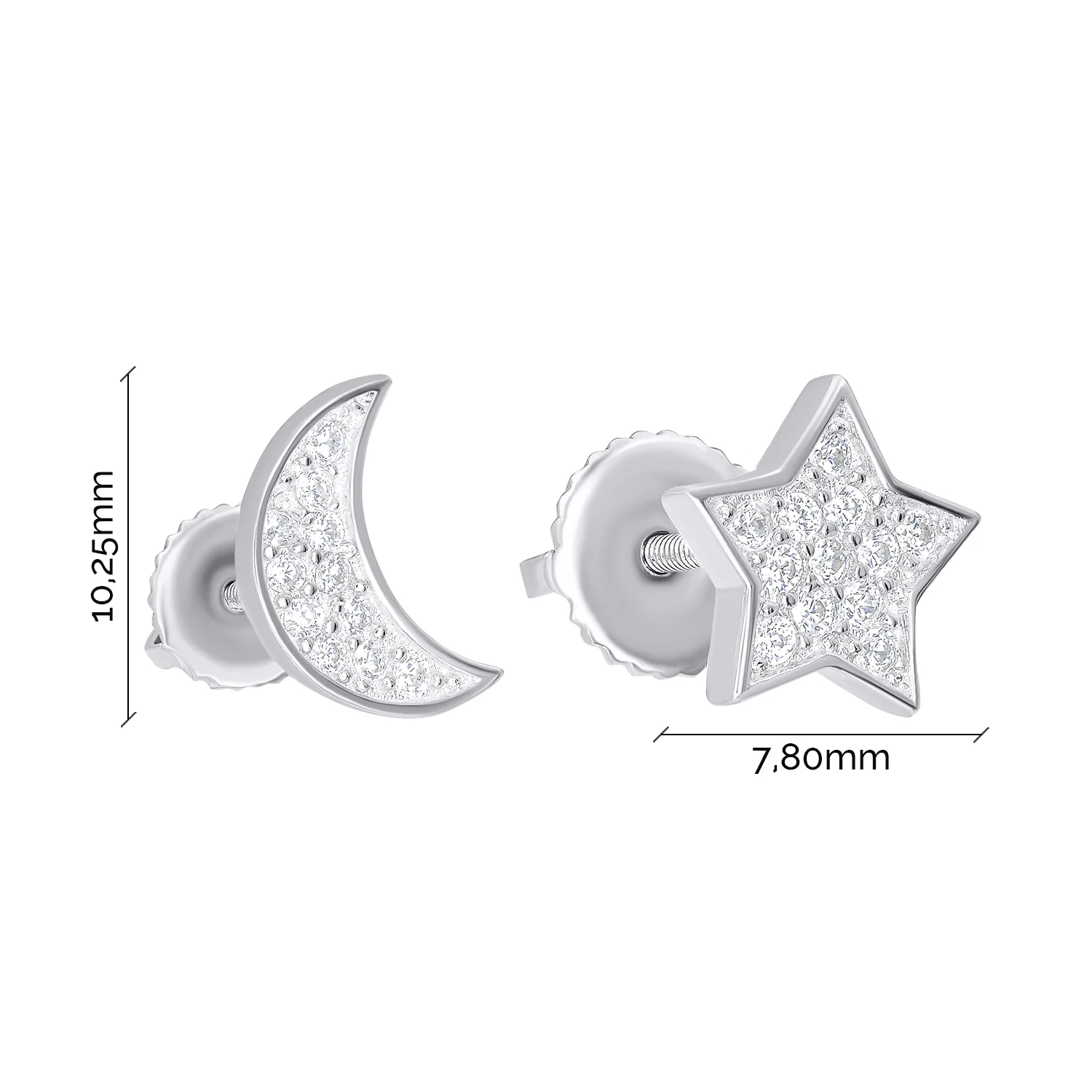 Сережки-гвоздики из серебра с фианитами "Месяц и Звездочка" - 1486354