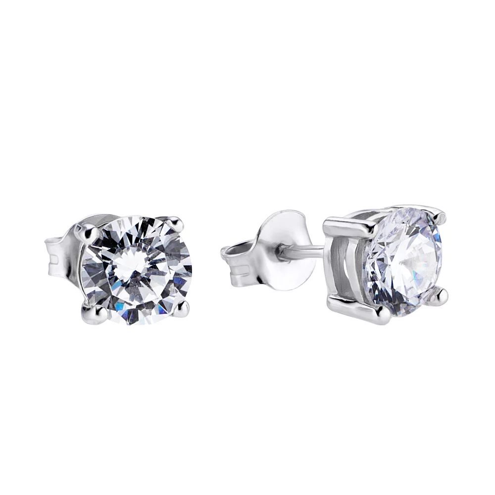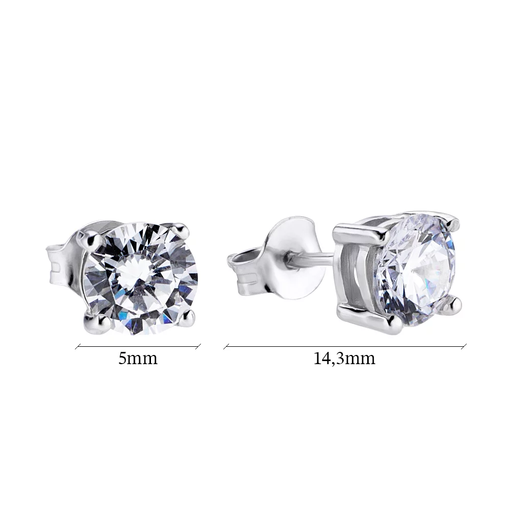 Сережки-гвоздики из серебра с фианитом - 1303091