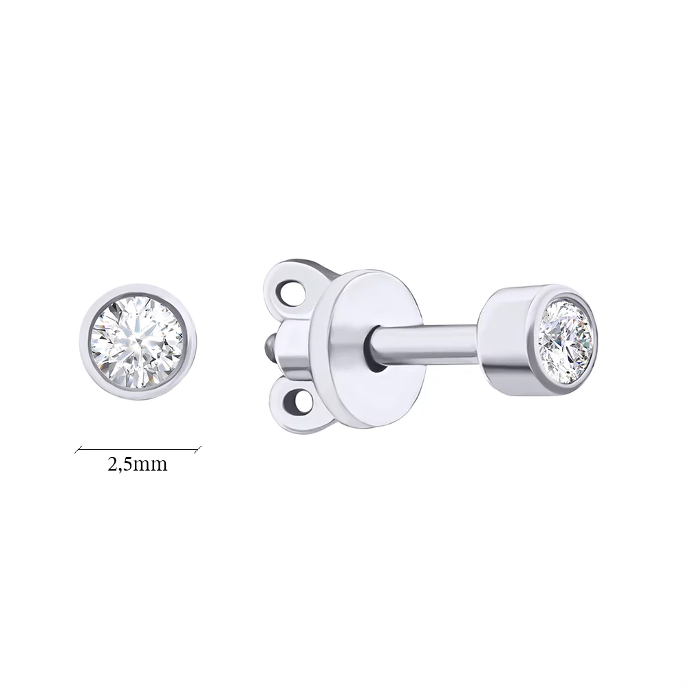 Сережки-гвоздики из серебра с фианитом - 968214
