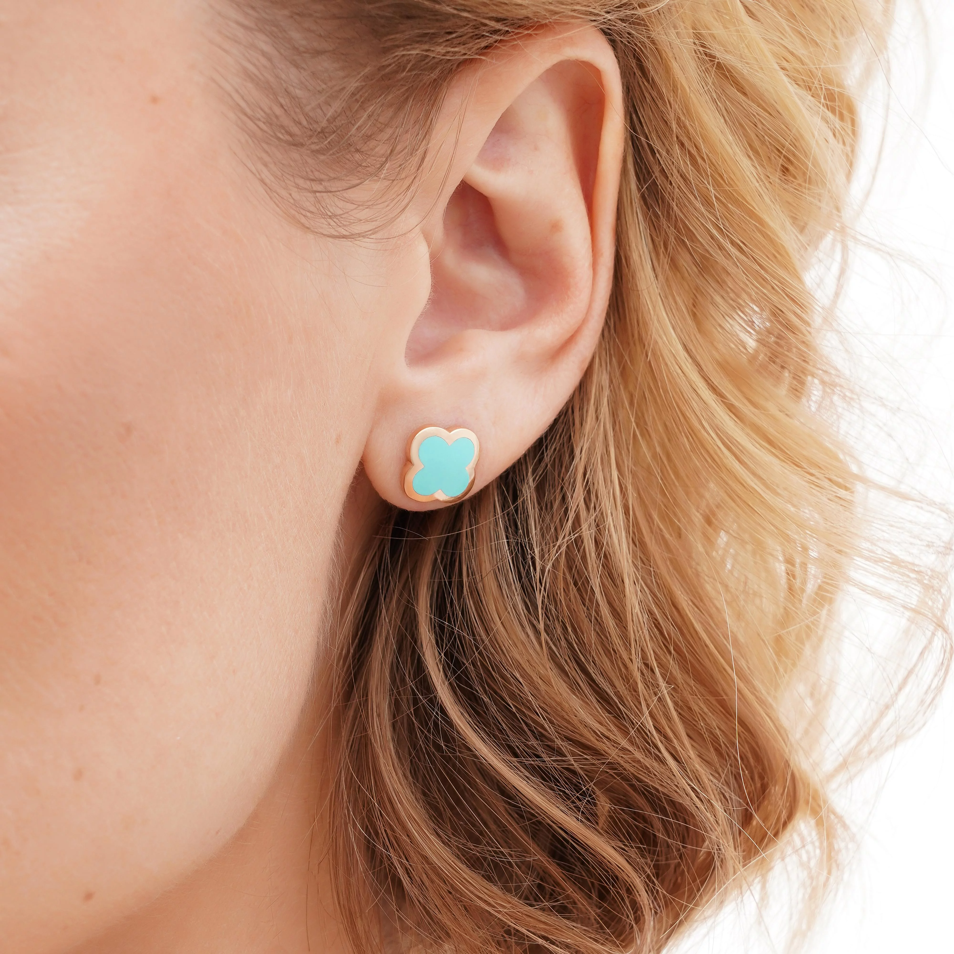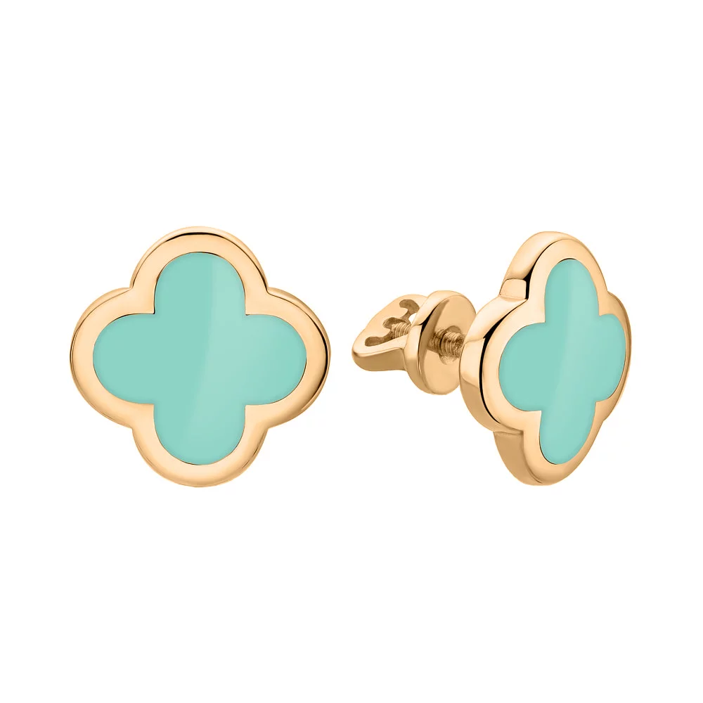 Экстравагантные сережки-гвоздики "Флора" в красном золоте с эмалью - 1927147
