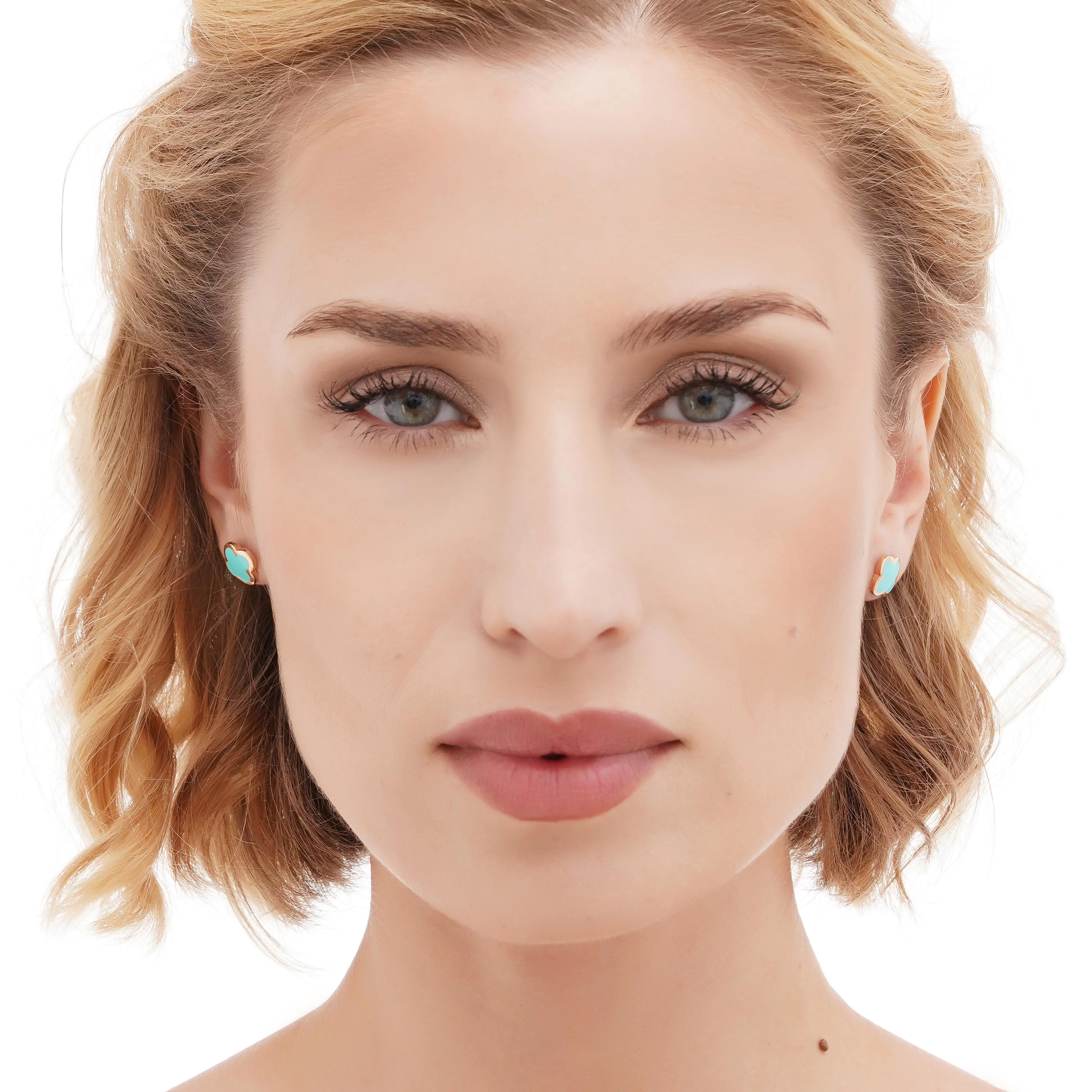 Сережки-гвоздики "Квадрат" в красном золоте с эмалью и фианитами - 1958569